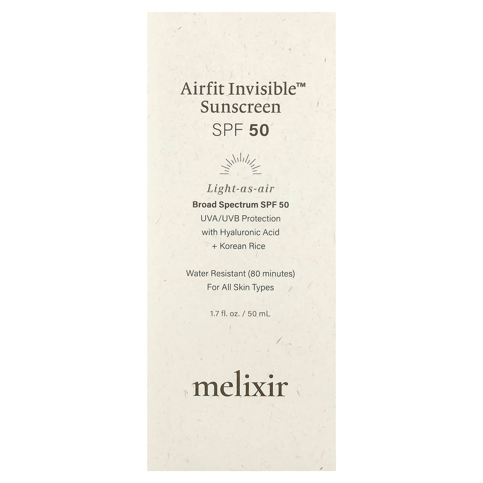 Солнцезащитный крем Airfit Invisable™ с SPF 50 — это незаменимое и легкое солнцезащитное средство, которое помогает защитить кожу от повреждений на солнце. Наша инновационная формула, обогащенная гиалуроновой кислотой и богатым питательными веществами корейского риса, обеспечивает защиту от ультрафиолета SPF 50, не оставляя белого оттенка. Кроме того, продукт водостойкий до 80 минут.