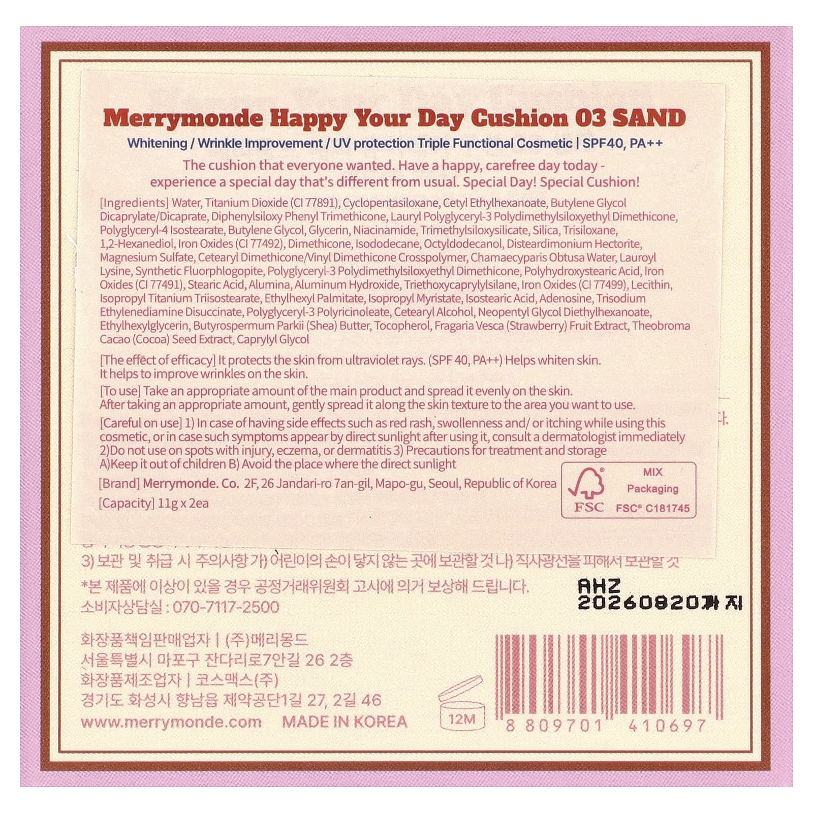 [Эффект от эффективности] Защищает кожу от ультрафиолетовых лучей. (SPF 40, PA ++) Помогает отбеливать кожу. Это помогает уменьшить морщины на коже.