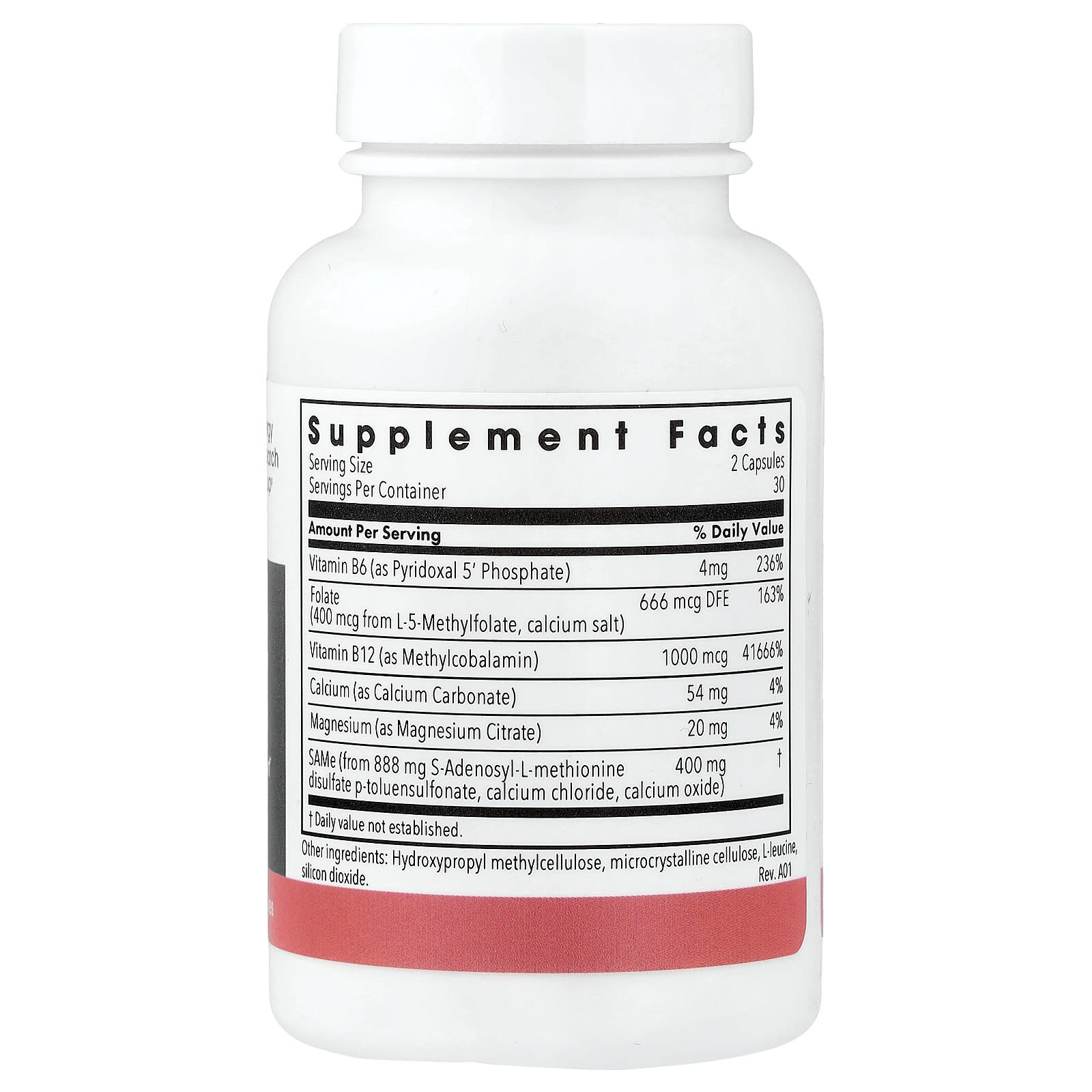 SAMe с кофакторами обеспечивает хорошее настроение, здоровье печени и метилирование. Сочетая SAMe с активными витаминами группы B (B6, метилфолат и метилкобаламин), эта формула способствует синтезу нейромедиаторов, детоксикации и поддержанию энергетического баланса на клеточном уровне.