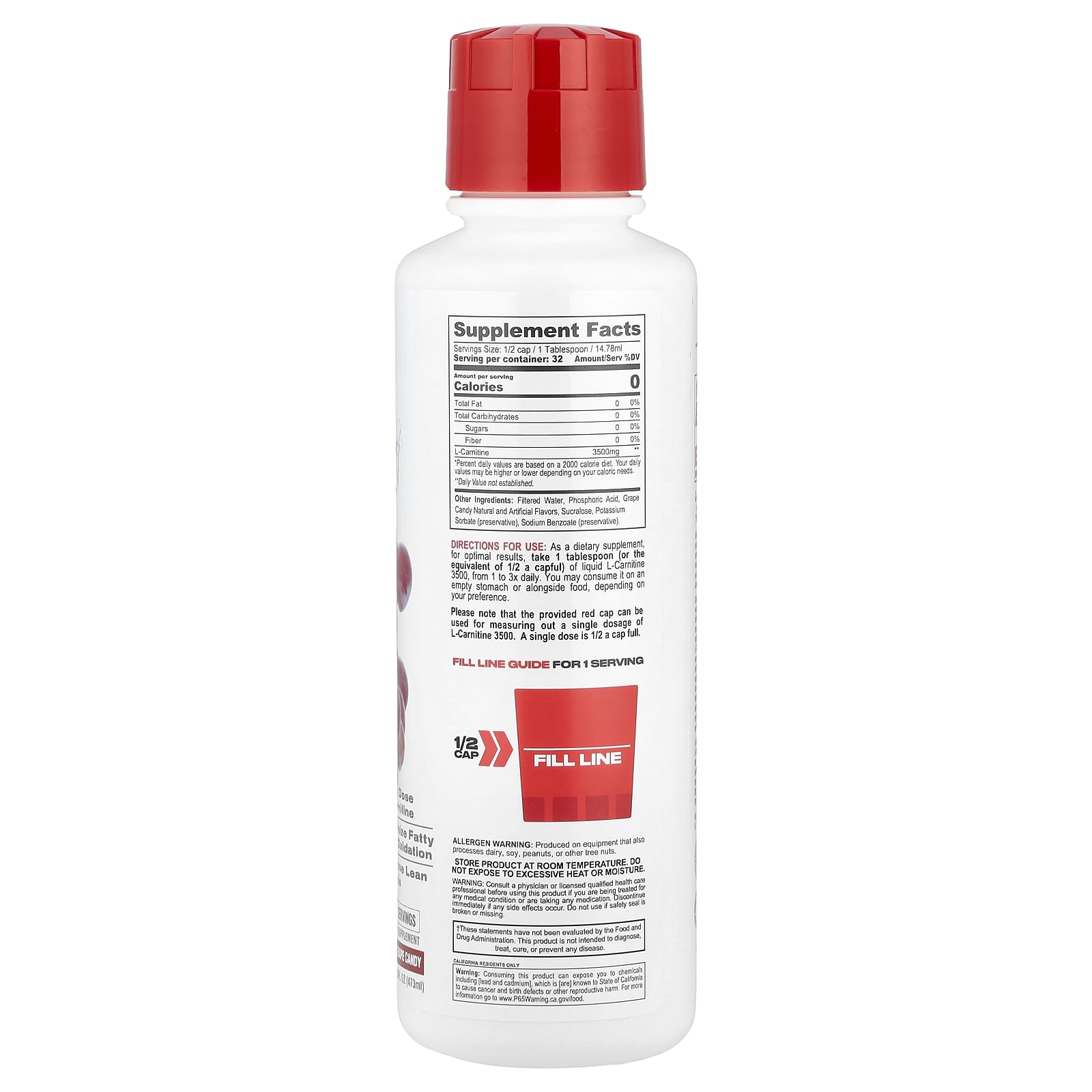 Обратите внимание, что красный колпачок из комплекта поставки можно использовать для отмеривания разовой дозы L-карнитина 3500. Разовая доза составляет 1/2 полного колпачка.