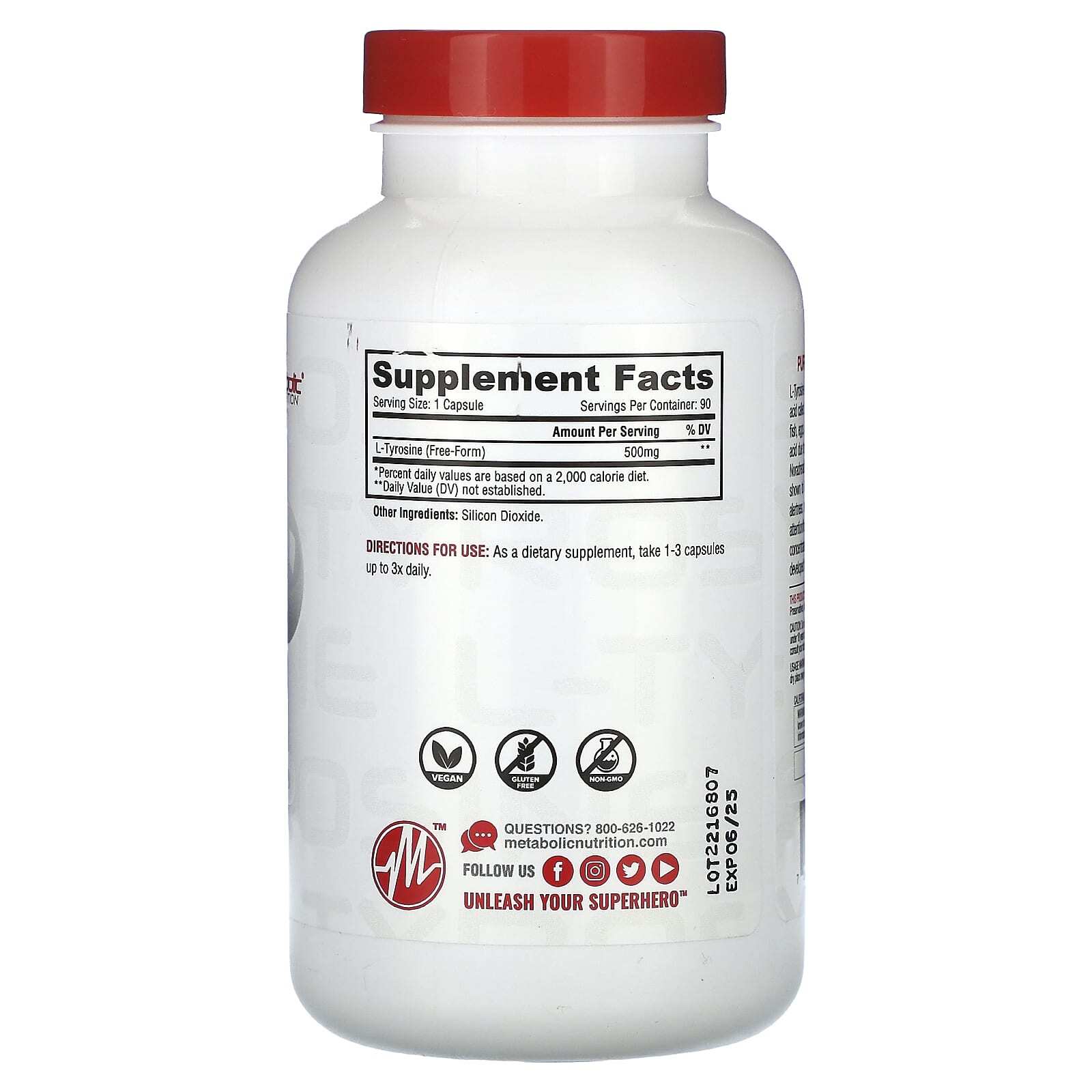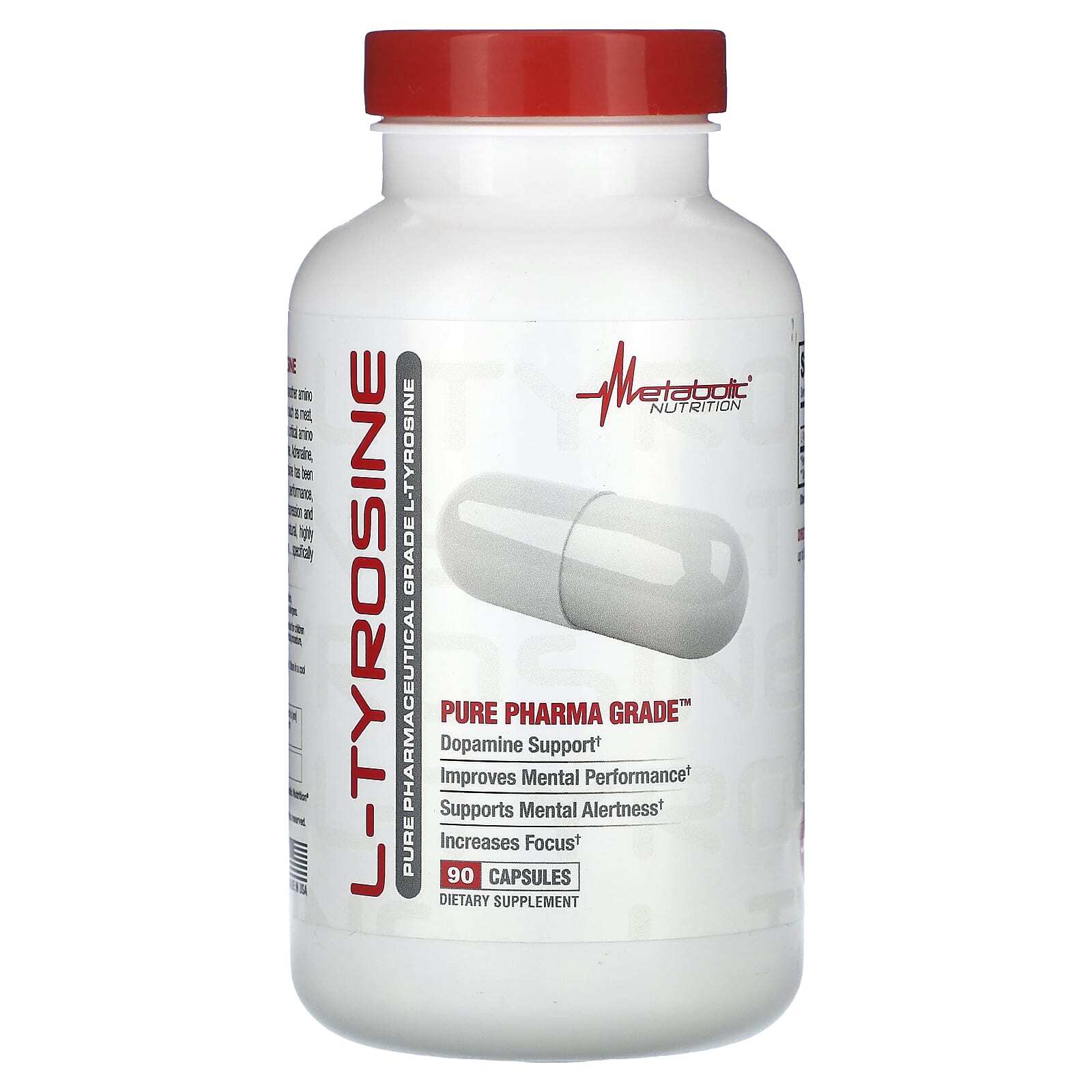 L-тирозин - это аминокислота, которая естественным образом вырабатывается в организме из другой аминокислоты, называемой фенилаланином. L-тирозин также содержится в некоторых продуктах, таких как мясо, рыба, яйца, молочные продукты, бобы, орехи, овес и пшеница. L-тирозин является важной аминокислотой из-за его участия в выработке и регуляции дофамина, адреналина, норадреналина, меланина и гормонов щитовидной железы. Из-за этого было доказано, что L-тирозин обладает лечебными свойствами в отношении улучшения умственной деятельности, внимания, улучшения памяти и полезен при стрессе, депрессии и проблемах с вниманием / концентрацией. Metabolic Nutrition предоставляет очищенный, полностью натуральный, высококонцентрированный L-тирозин для максимальной эффективности и усвоения ... специально разработанный для людей, которые хотят максимизировать свое здоровье и хорошее самочувствие.