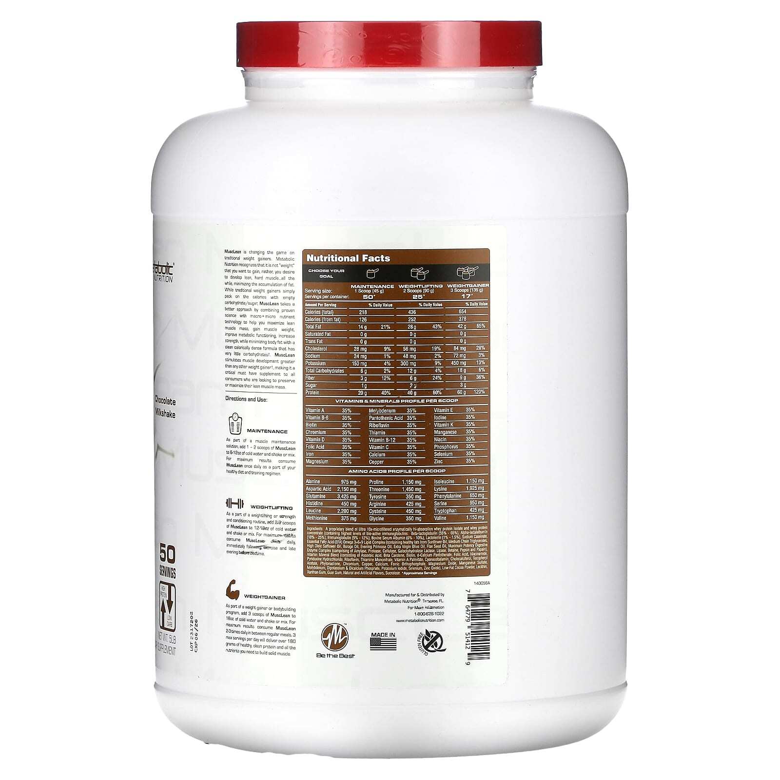 MuscLean меняет правила игры на традиционных гейнерах. Metabolic Nutrition понимает, что вы хотите набрать не «вес», а, скорее, наращивать сухие и твердые мышцы ... все это время, сводя к минимуму накопление жира. В то время как традиционные гейнеры просто набирают калории с пустыми углеводами / сахаром, MuscLean использует более эффективный подход, сочетая проверенные научные данные с технологией макро и микронутриентов, чтобы помочь вам максимизировать сухую мышечную массу, набрать мышечную массу, улучшить метаболические функции, увеличить силу во время тренировок. уменьшение жировых отложений с помощью чистой калорийной и плотной формулы с очень низким содержанием углеводов. MuscLean стимулирует развитие мышц в большей степени, чем любой другой гейнер, что делает его незаменимой добавкой для потребителей, которые хотят сохранить или максимизировать свою сухую мышечную массу.