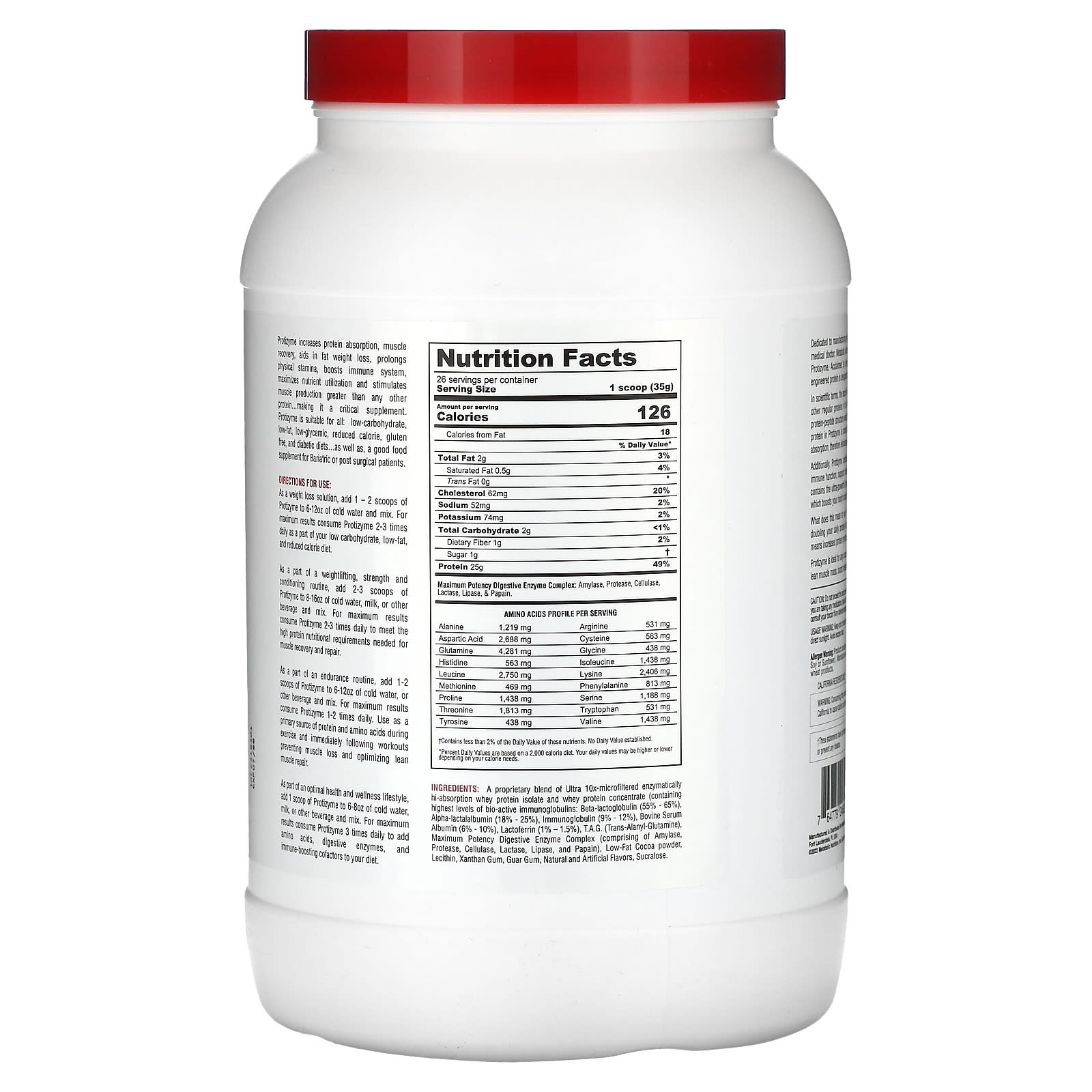 Protizyme увеличивает усвоение белка, восстановление мышц, способствует снижению веса, продлевает физическую выносливость, укрепляет иммунную систему, максимизирует использование питательных веществ и стимулирует выработку мышц в большей степени, чем любой другой белок, что делает его важной добавкой. Protizyme подходит для всех: для низкоуглеводных, обезжиренных, низкогликемических, низкокалорийных, безглютеновых и диабетических диет… а также является хорошей пищевой добавкой для бариатрических или послеоперационных пациентов.