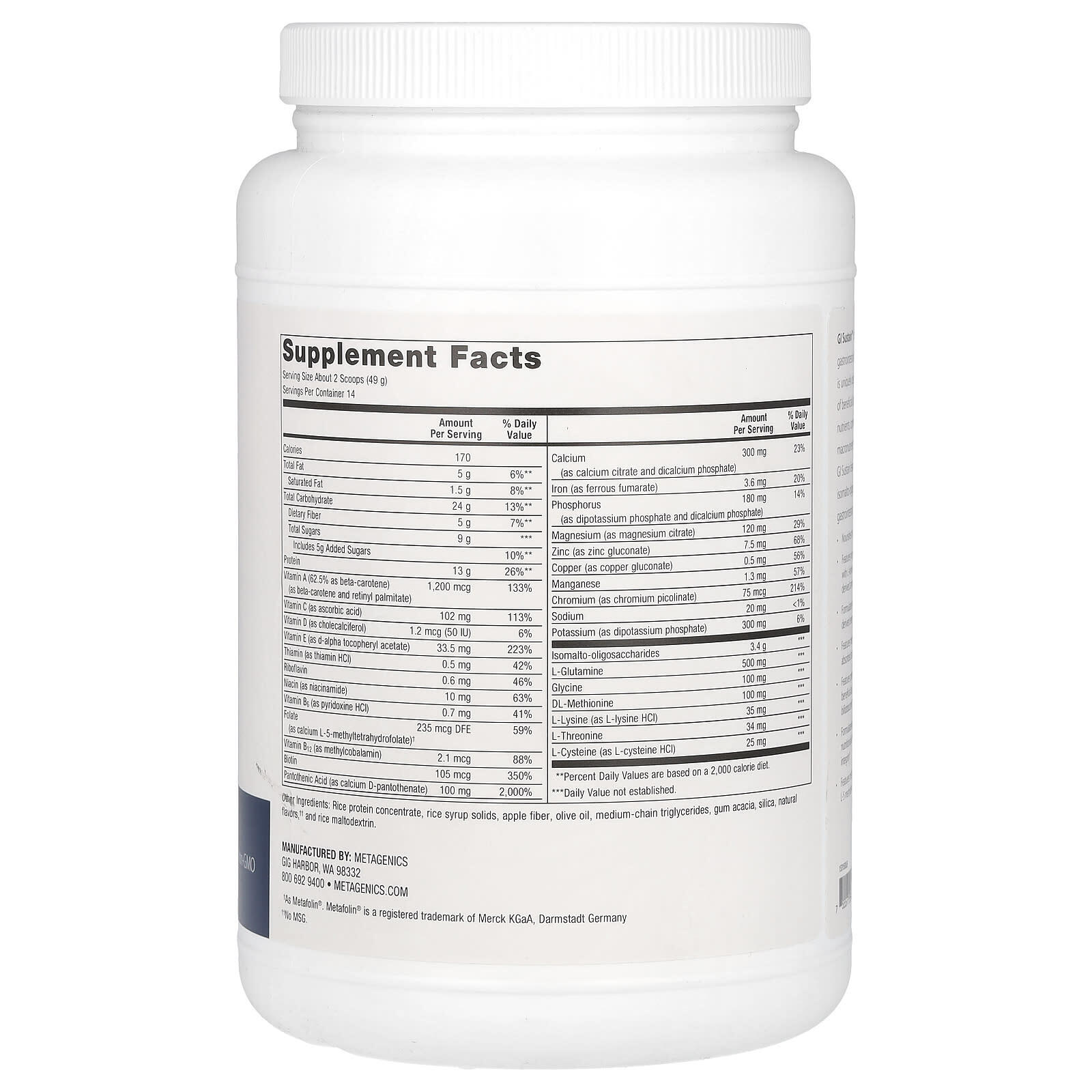 GI Sustain™ обеспечивает питательную поддержку желудочно-кишечного тракта. Уникальная формула разработана, чтобы способствовать росту полезных бактерий, включая пребиотические питательные вещества в сочетании с легкоусвояемыми макроэлементами.