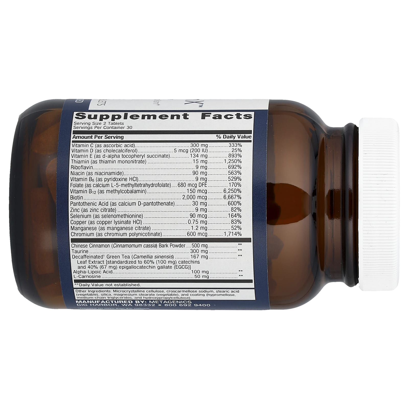 MetaGlycemX™ содержит уникальное сочетание экстракта зеленого чая, корицы и альфа-липоевой кислоты - питательных веществ, которые поддерживают здоровый метаболизм инсулина при использовании в рамках здорового рациона для сохранения уровня сахара в крови, уже находящегося в пределах нормы. Зеленый чай содержит эпигаллокатехин-галлат (EGCG), который поддерживает здоровый обмен глюкозы. Альфа-липоевая кислота - это мощный антиоксидант, нейтрализующий свободные радикалы. MetaGlycemX также содержит другие ключевые поддерживающие питательные вещества, включая метилкобаламин, биотин, хром и витамины C и E, объединенные в сбалансированную формулу.
