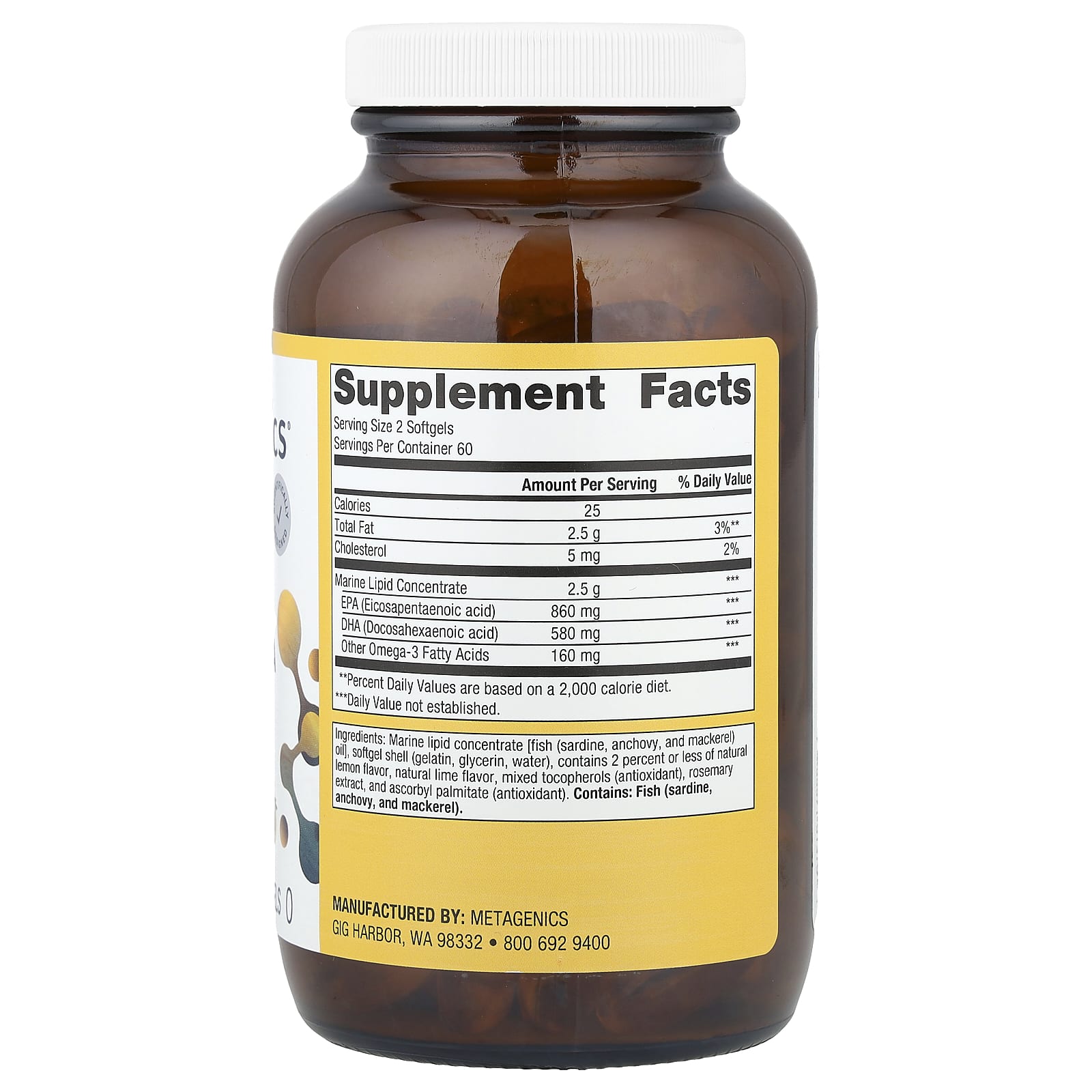 OmegaGenics® EPA-DHA 720 содержит концентрированный очищенный источник омега-3 жирных кислот из экологически чистых холодноводных рыб. Каждая капсула содержит 430 мг ЭПК и 290 мг ДГК.