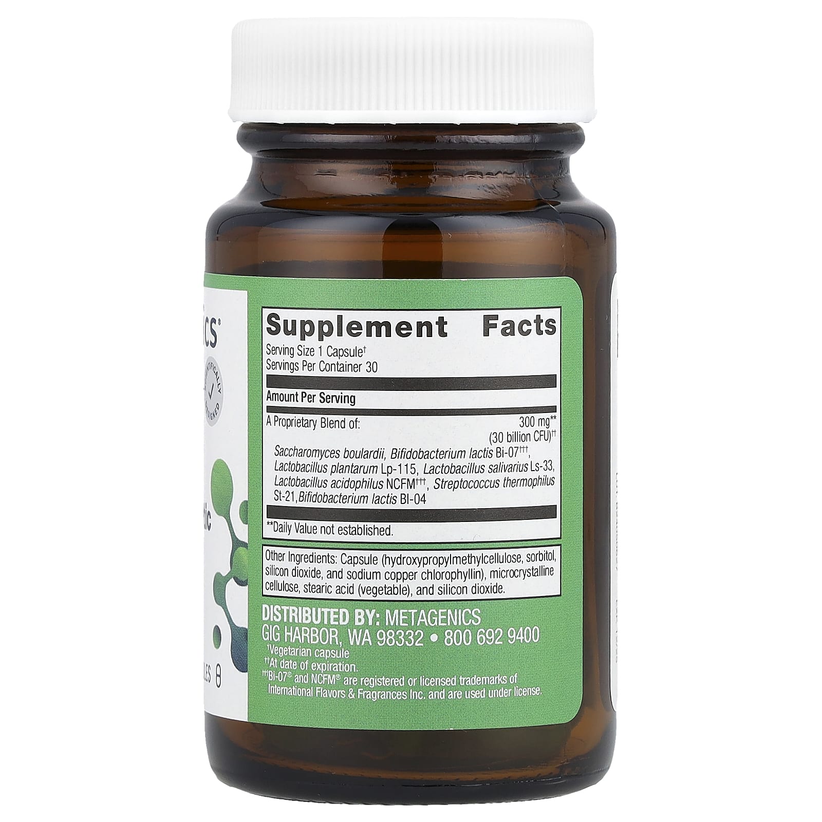 | Запатентованная смесь: Сахаромицеты буларди (Saccharomyces boulardii), бифидобактерии лактис (Bifidobacterium lactis) Би-07, Лактобактерии плантарум Lp-115, лактобактерии саливариус Ls-33, Ацидофильные лактобактерии (Lactobacillus acidophilus) NCFM, Streptococcus thermophilus Ст-21, бифидобактерии лактис БИ-04 | 300 мг (30 млрд КОЕ) †† | ** |