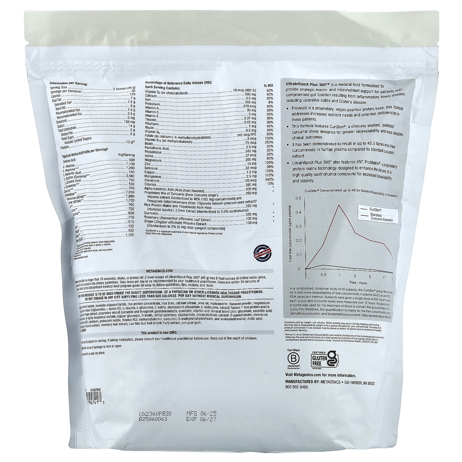 UltraInflamX Plus 360°® - это лечебный продукт, разработанный для обеспечения стратегической поддержки макро- и микронутриентов пациентам с нарушенной функцией кишечника в результате воспалительного заболевания кишечника, включая язвенный колит и болезнь Крона.