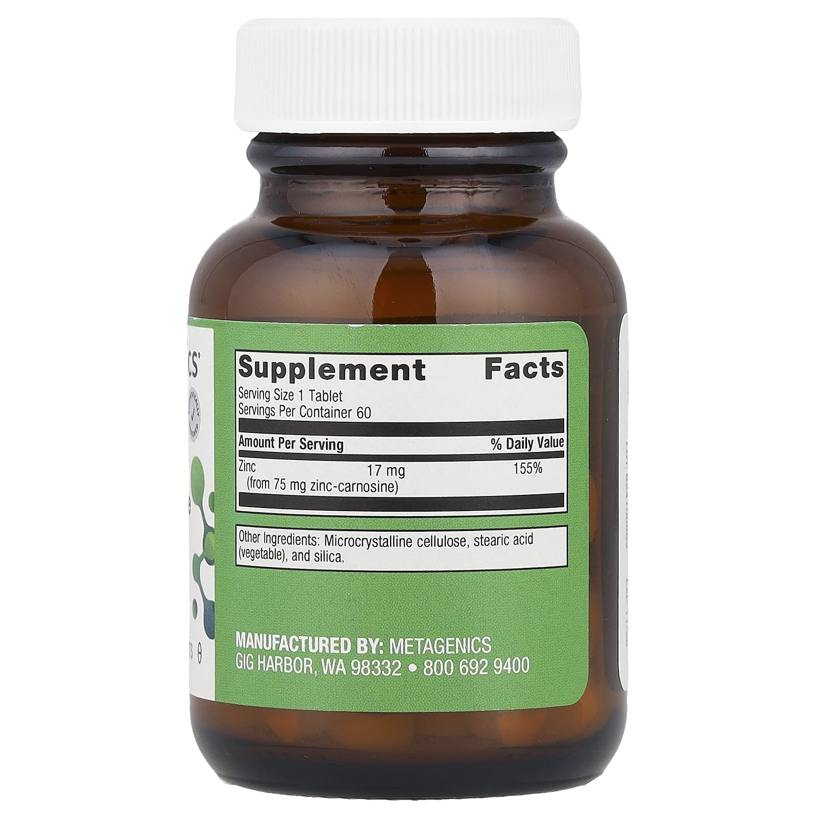 | Цинк (из 75 мг цинка-карнозина) | 17 мг | 155% |