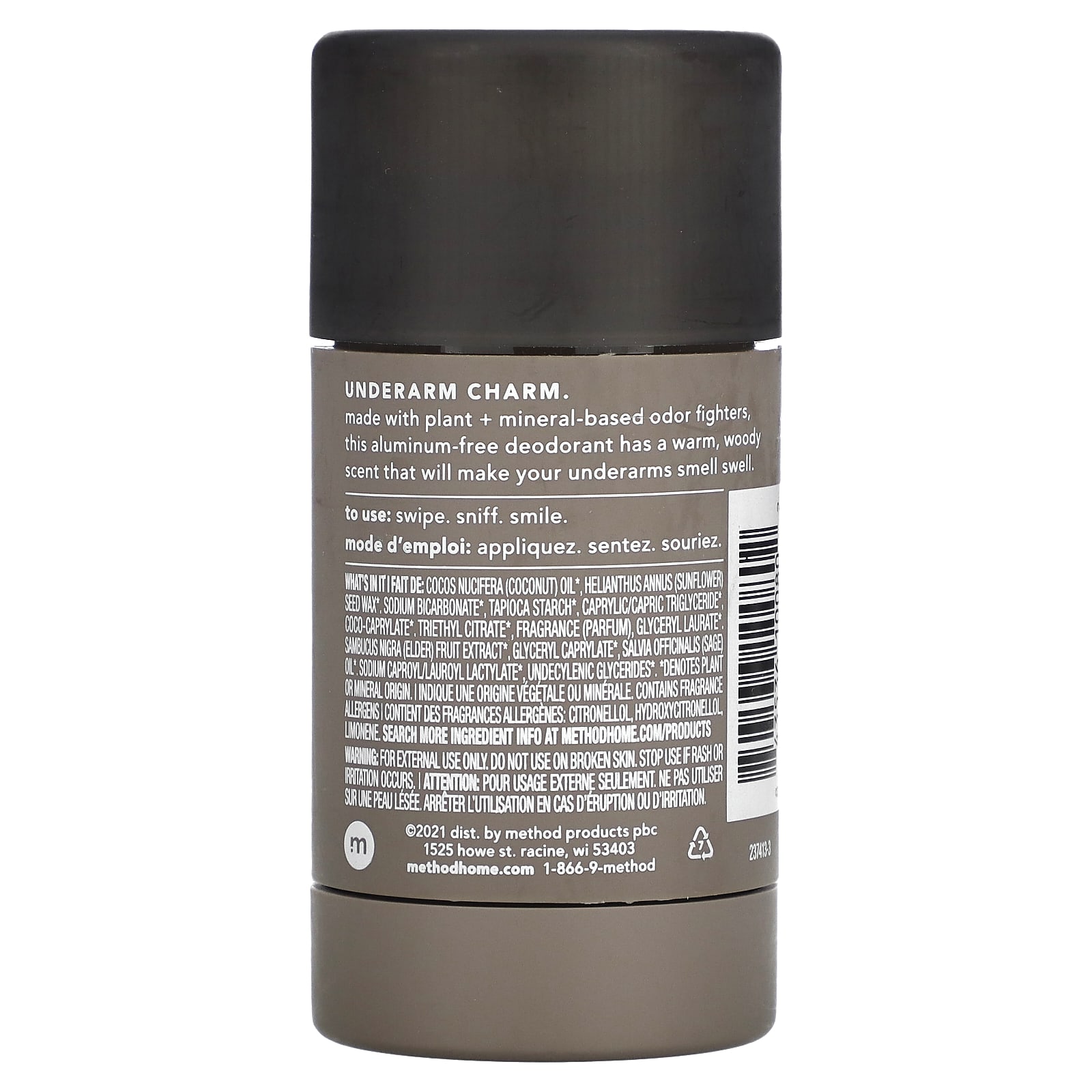 Этот дезодорант без алюминия, изготовленный на основе растительных и минеральных компонентов, борется с неприятным запахом и имеет теплый древесный запах, от которого пахнет подмышками.