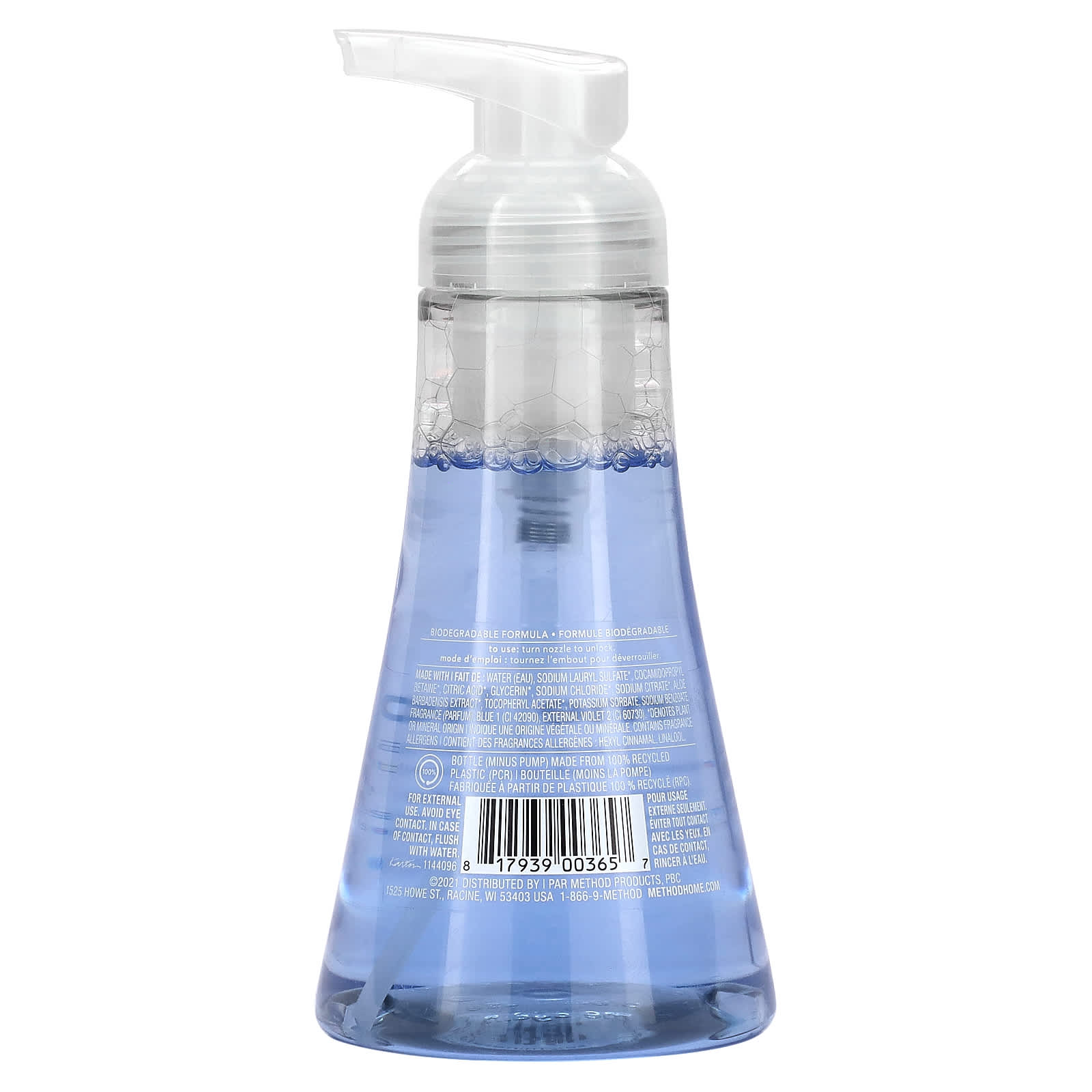 Вода (eau), лаурилсульфат натрия*, кокамидопропилбетаин*, лимонная кислота*, глицерин*, хлорид натрия*, цитрат натрия *, экстракт алоэ вера *, токоферилацетат*, сорбат калия, бензоат натрия, отдушка (парфюмерная композиция), краситель синий 1 (CI 42090), внешний фиолетовый 2 (CI 60730).