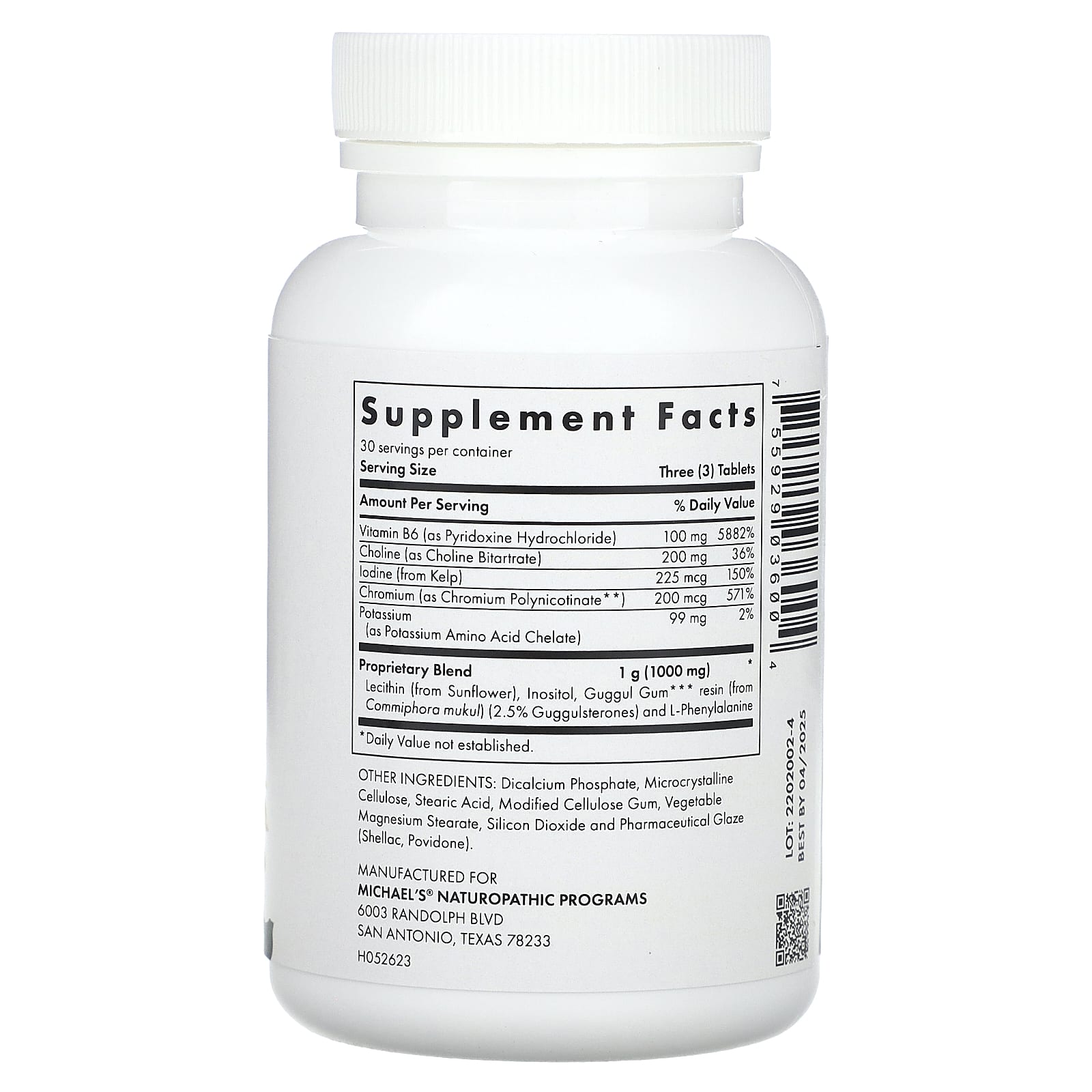 | Запатентованная смесь Лецитин (из подсолнечника), инозитол, смола гуггула (из коммифоры mukul) (2,5% гуггулстеронов) и L-фенилаланин. | 1 г (1000 мг) | * |