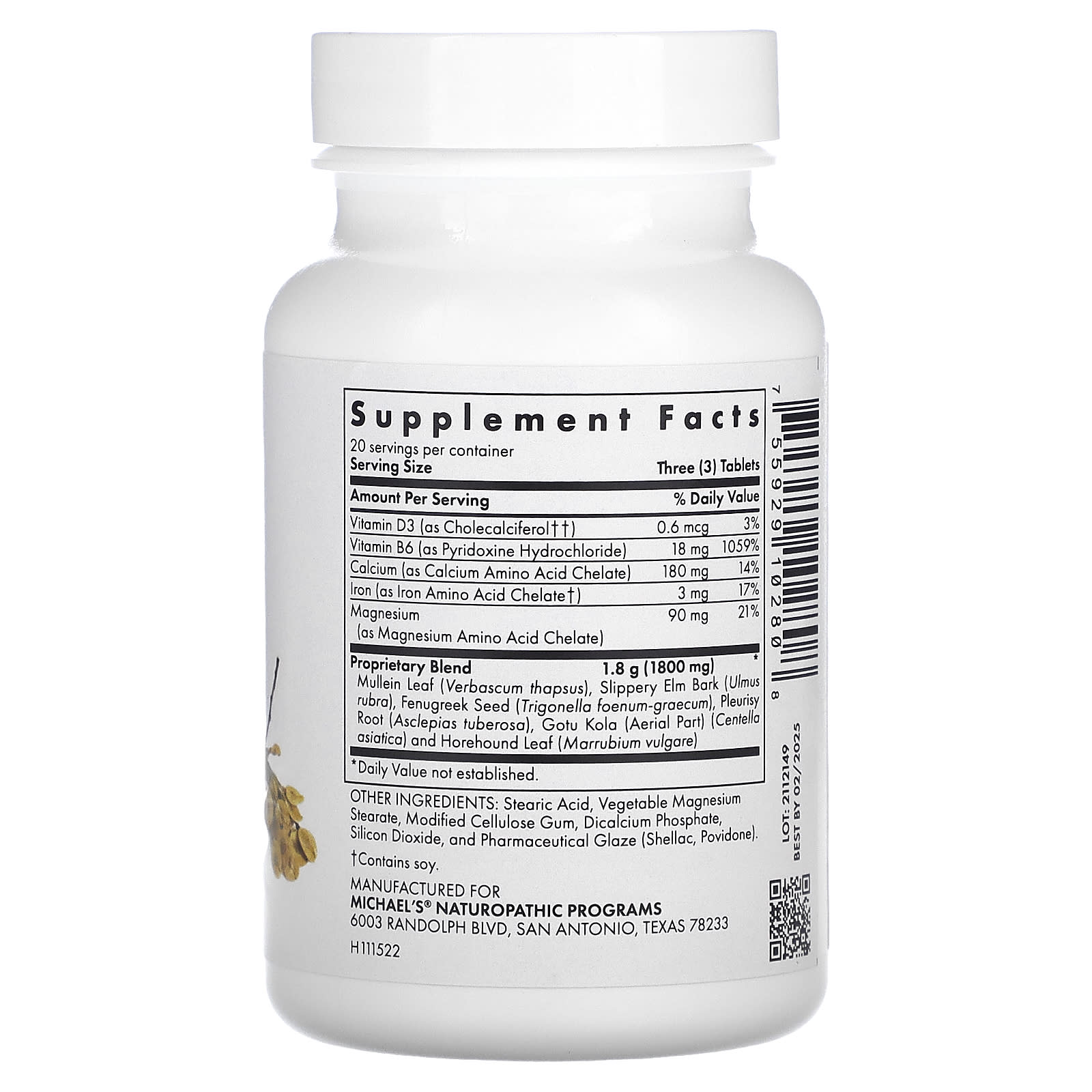 | Запатентованная смесь листья коровяка (Verbascum thapsus), кора вяза красного (Ulmus rubra), семена пажитника (Trigonella foenum-graecum), корень плеврита (Asclepias Tuberosa), надземная часть готу колы (Centella asiatica) и листья шандры (Marrubium vulgare) | 1,8 г (1800 мг) | * |