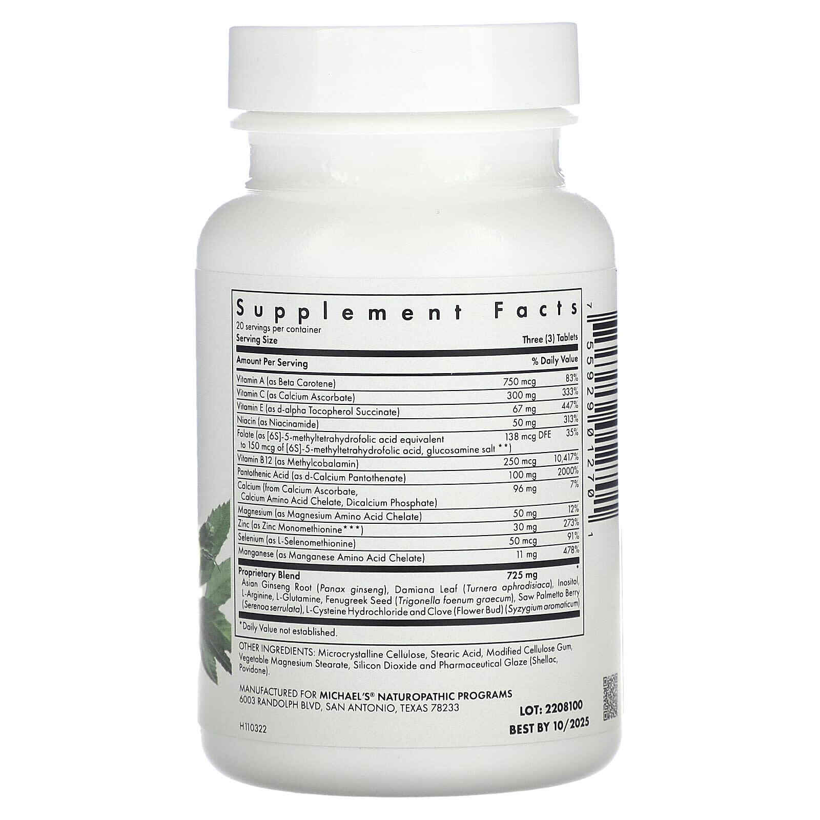 Запатентованная смесь Корень женьшеня азиатского (Panax ginseng), листья дамианы (Turnera aphrodisiaca), инозитол, L-аргинин, L-глутамин, семена пажитника (Trigonella foenum graecum), ягоды серенои (Serenoa serrulata), L-цистеина гидрохлорид и гвоздика (бутон) (Syzygium aromaticum) | 725 мг | * |