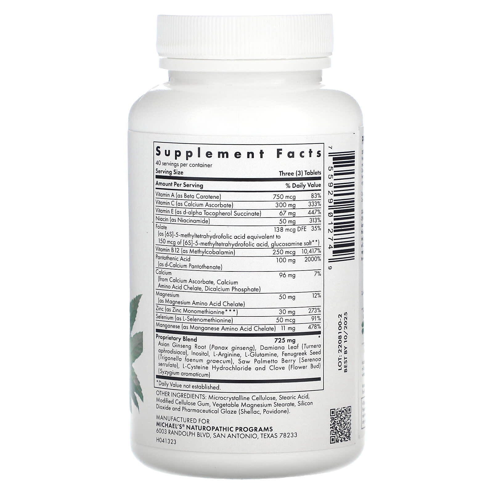 Proprietary Blend Asian Ginseng Root (Panax ginseng), Damiana Leaf (Turnera aphrodisiaca), Inositol, L-Arginine, L-Glutamine, Fenugreek Seed (Trigonella foenum graecum), Saw Palmetto Berry (Serenoa serrulata), L-Cysteine Hydrochloride and Clove (Flower Bud) (Syzygium aromaticum) | 725 mg | * |