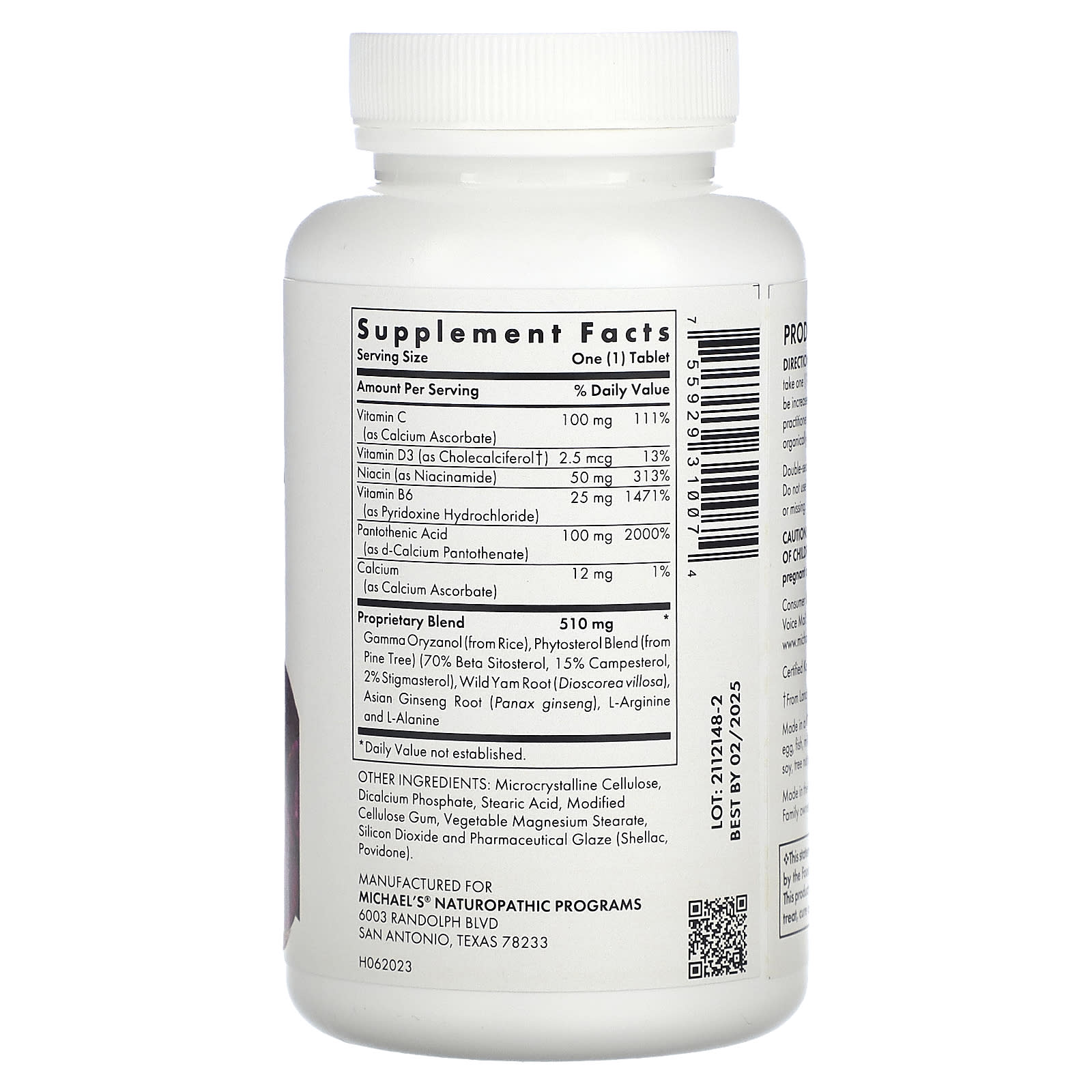 | Запатентованная смесь гамма оризанол (из риса), смесь фитостеролов (из сосны) (70% бета-ситостерола, 15% кампестерина, 2% стигмастерола), корень дикого ямса (Dioscorea villosa), корень женьшеня азиатского (Panax ginseng), L-аргинин и L-аргинин — аланин | 510 мг | * |