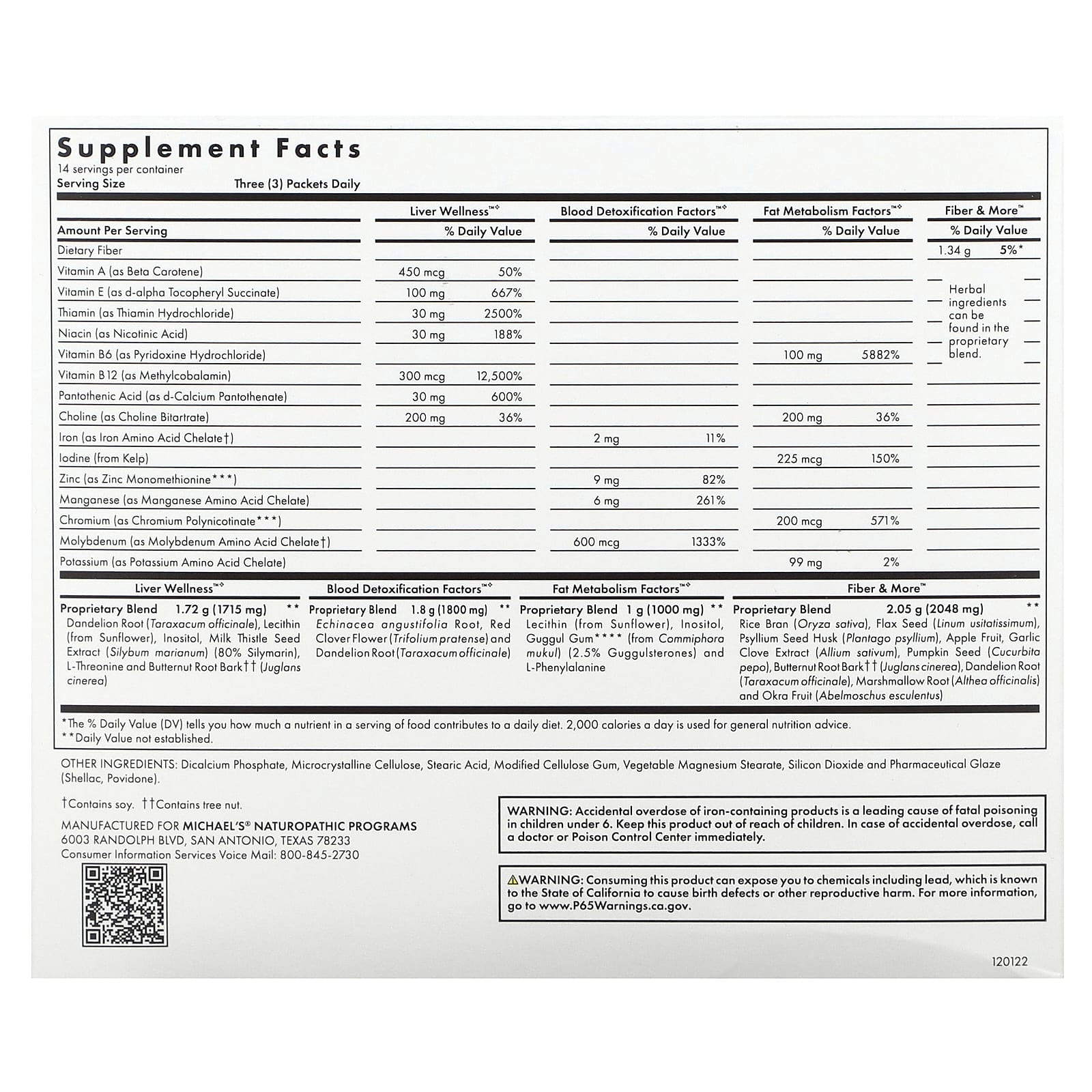 Принимайте содержимое одного (1) пакетика с каждым приемом пищи (3 пакетика в день). Следуйте этому графику в течение 14 дней. Во время прохождения программы Ultimate Detox & Cleanse™ от Michael's® пейте много воды (лучше всего использовать дистиллированную, не из-под крана). 8 стаканов и более в день. Также полезно увеличить потребление волокнистых фруктов и овощей, уменьшив при этом потребление обработанных пищевых продуктов, мяса и молочных продуктов.