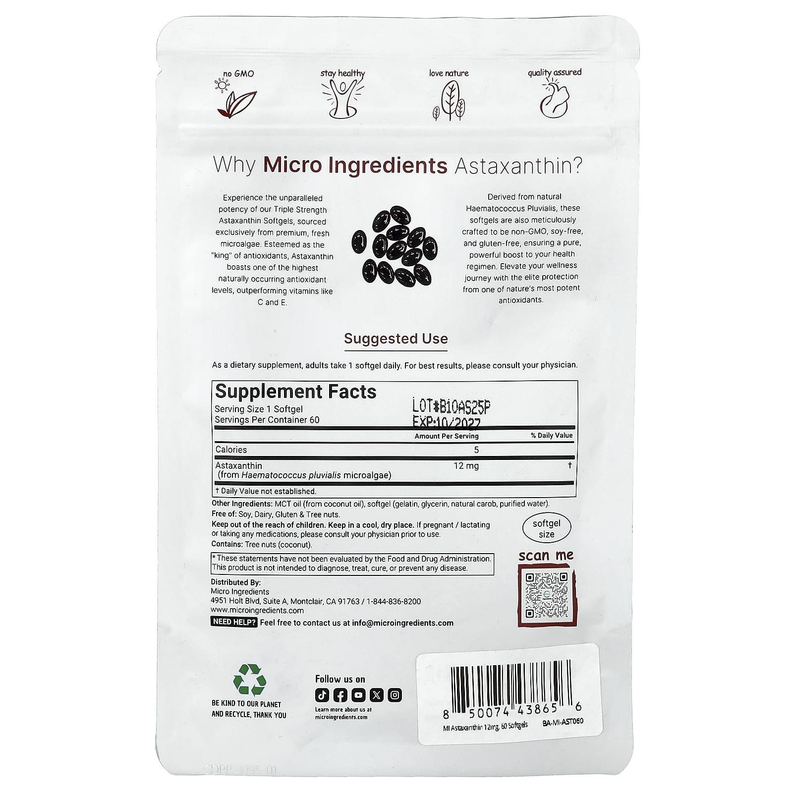 Почувствуйте беспрецедентную эффективность наших капсул с астаксантином тройной силы, полученных исключительно из свежих микроводорослей премиального качества. Астаксантин, считающийся "королем" антиоксидантов, имеет один из самых высоких уровней природных антиоксидантов, превосходя такие витамины, как C и E.