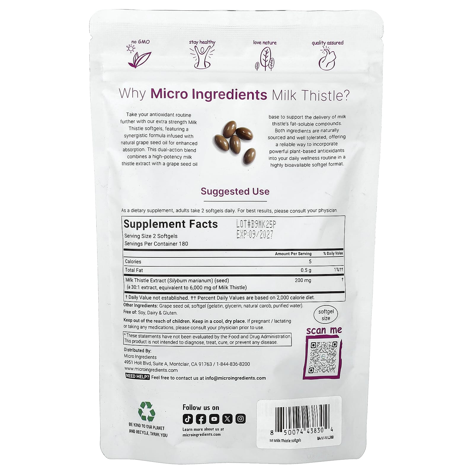 Дополните свой рацион антиоксидантами с помощью наших капсул с расторопшей повышенной силы действия, которые содержат синергетическую формулу, обогащенную натуральным маслом виноградных косточек для лучшего усвоения. Эта смесь двойного действия сочетает в себе высокоэффективный экстракт расторопши с основой из масла виноградных косточек, которые способствуют доставке жирорастворимых соединений расторопши. Оба ингредиента имеют натуральное происхождение и хорошо переносятся. Это надежный способ включить эффективные растительные антиоксиданты в ваш повседневный рацион в форме капсул с высокой биодоступностью.