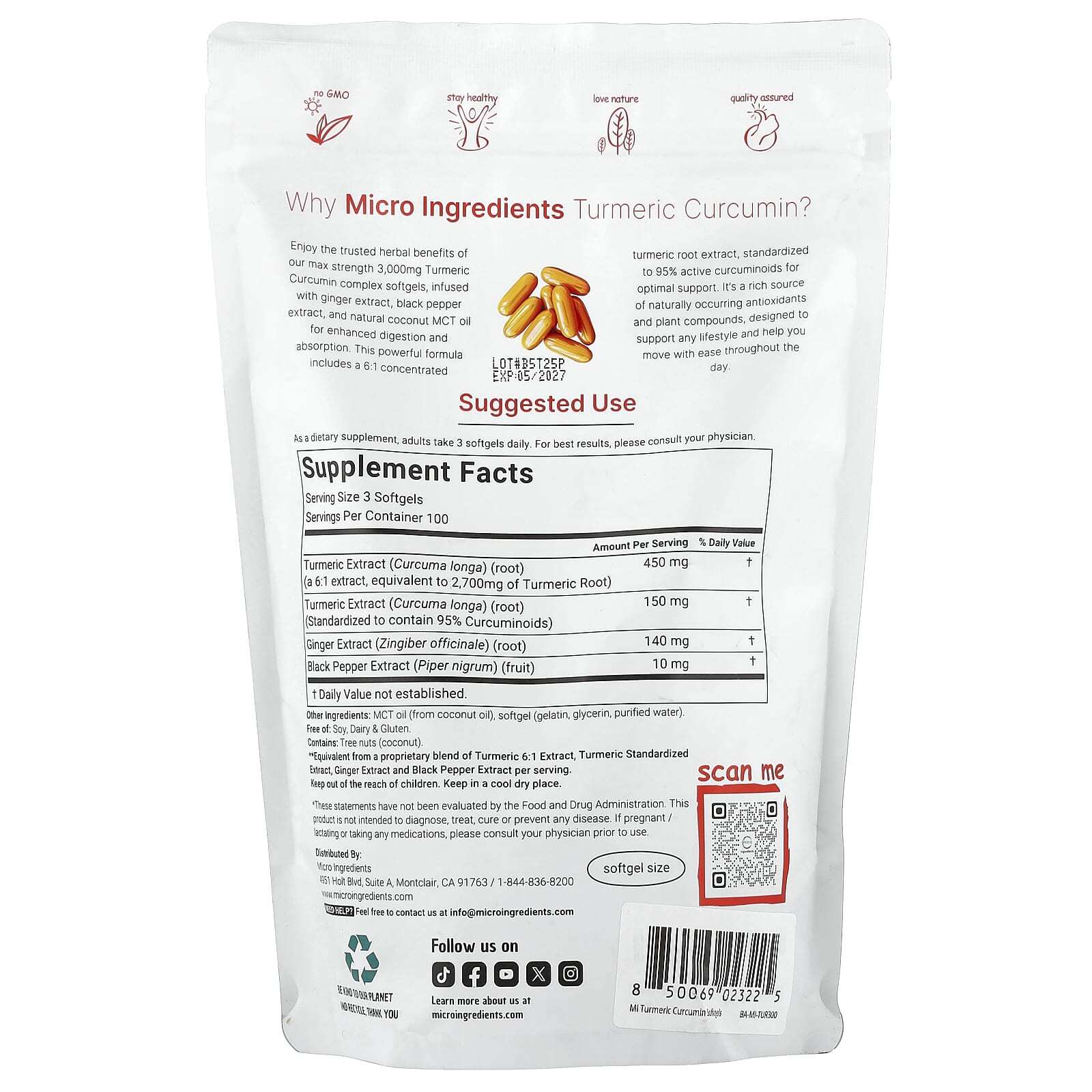 Наслаждайтесь проверенными полезными свойствами трав в нашем комплексе куркумина с куркумой максимальной силы действия (3000 мг), наполненных экстрактом имбиря, экстрактом черного перца и натуральном кокосовым маслом MCT, которые улучшают пищеварение и усвоение. Эта эффективная формула включает концентрированный экстракт корня куркумы в соотношении 6:1, стандартизированный до 95% активных куркуминоидов для оптимальной поддержки. Это богатый источник природных антиоксидантов и растительных соединений, разработанный для любого образа жизни и помогающий вам с легкостью двигаться в течение дня.