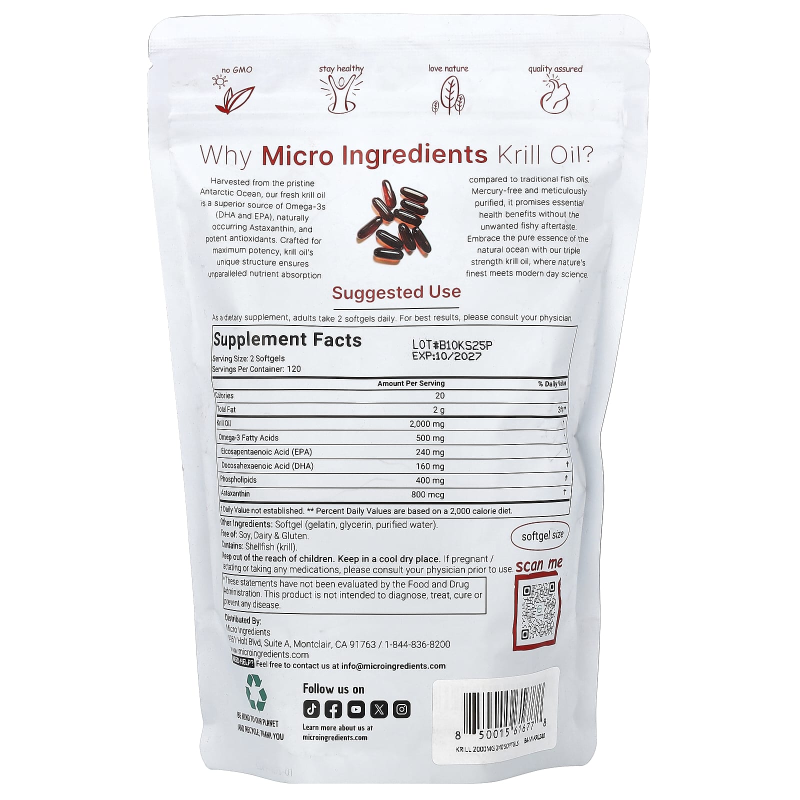 Наше свежее масло криля, полученное из первозданных вод Антарктического океана, является превосходным источником омега-3 кислот (ДГК и ЭПК), натурального астаксантина и мощных антиоксидантов. Уникальная структура масла криля, созданная для максимальной эффективности, обеспечивает беспрецедентное усвоение питательных веществ по сравнению с традиционным рыбьим жиром. Не содержащий ртути и тщательно очищенный продукт сулит важную пользу для здоровья без нежелательного рыбного послевкусия. Насладитесь чистой эссенцией природного океана с нашим маслом криля тройной силы, в котором лучшие природные ингредиенты сочетаются с современной наукой.