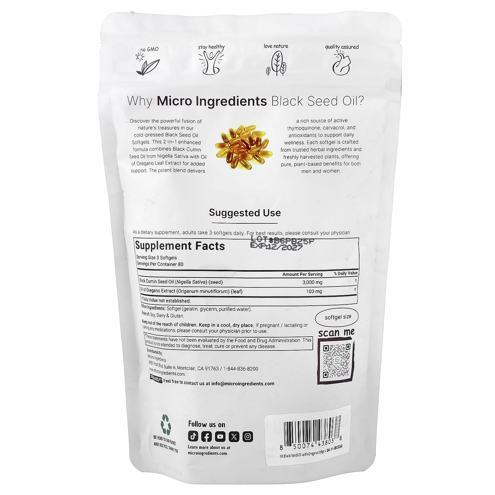 Откройте для себя эффективное сочетание природных сокровищ в наших капсулах с маслом черного тмина холодного отжима. Это улучшенное средство 2 в 1 сочетает в себе масло семян черного тмина из Nigella sativa и масло из экстракта листьев орегано для дополнительной поддержки. Эффективная смесь является богатым источником активного тимохинона, карвакрола и антиоксидантов для ежедневной поддержки хорошего самочувствия. Каждая капсула изготовлена из проверенных растительных ингредиентов и свежесобранных растений и предлагает чистые полезные свойства растительной добавки как для мужчин, так и для женщин.