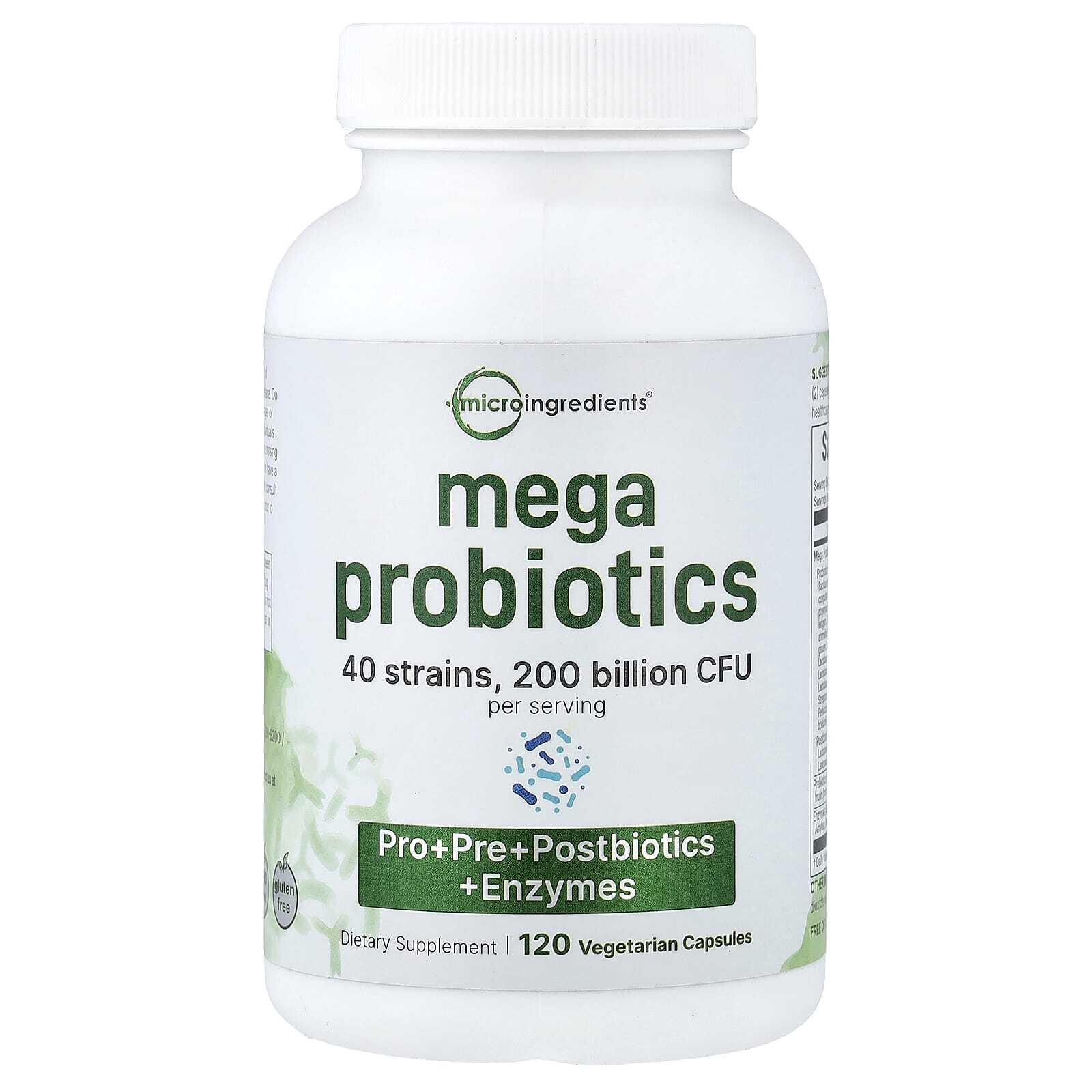 Micro Ingredients предлагает максимально эффективные растительные капсулы «Мега пробиотик» с 200 млрд КОЕ в 1 порции. Содержит 40 разных штаммов, которые обеспечивают еще более полезные свойства.