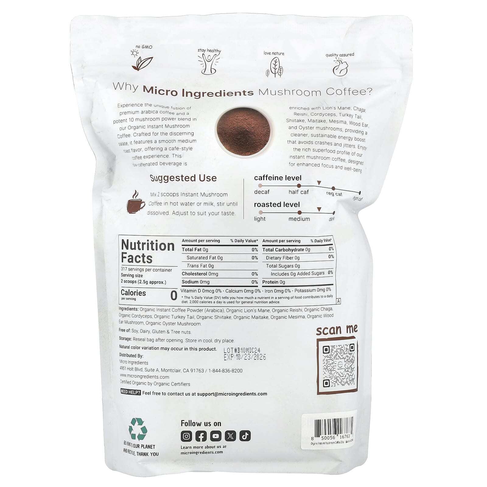 Насладитесь уникальным сочетанием премиального кофе арабика и мощной смеси «10 грибов» в нашем органическом растворимом кофе с грибами. Созданный для взыскательных гурманов, он обладает мягким вкусом средней обжарки, предлагая кофе в стиле кафе. Этот напиток с низким содержанием кофеина обогащен львиной гривой, чагой, рейши, кордицепсом, грибами индюка, шиитаке, майтаке, месима, древесным колосом и вешенками, обеспечивая более чистый и устойчивый заряд энергии, избегая сбоев и нервозности. Наслаждайтесь богатым вкусом нашего растворимого кофе с грибами, созданным для улучшения концентрации внимания и хорошего самочувствия.