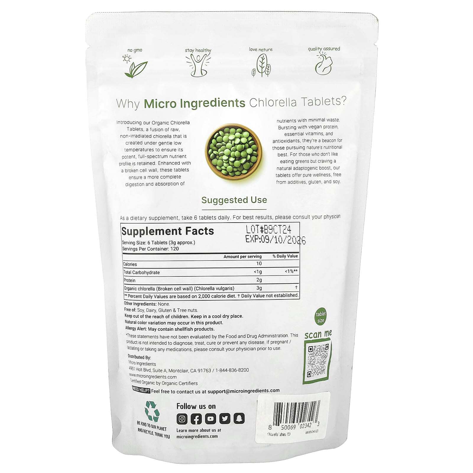 Представляем вам наши таблетки с органической хлореллой - смесью необработанной, необлученной хлореллы, которая создается при мягких низких температурах для сохранения ее мощного и полного спектра питательных веществ. Эти таблетки с разрушенной клеточной стенкой обеспечивают более полное переваривание и усвоение питательных веществ с минимальными потерями. Наполненные веганским белком, незаменимыми витаминами и антиоксидантами, они являются маяком для тех, кто стремится к природному питанию. Для тех, кто не любит есть зелень, но жаждет естественных адаптогенных эффектов, наши таблетки предлагают чистое здоровье, без добавок, глютена и сои.