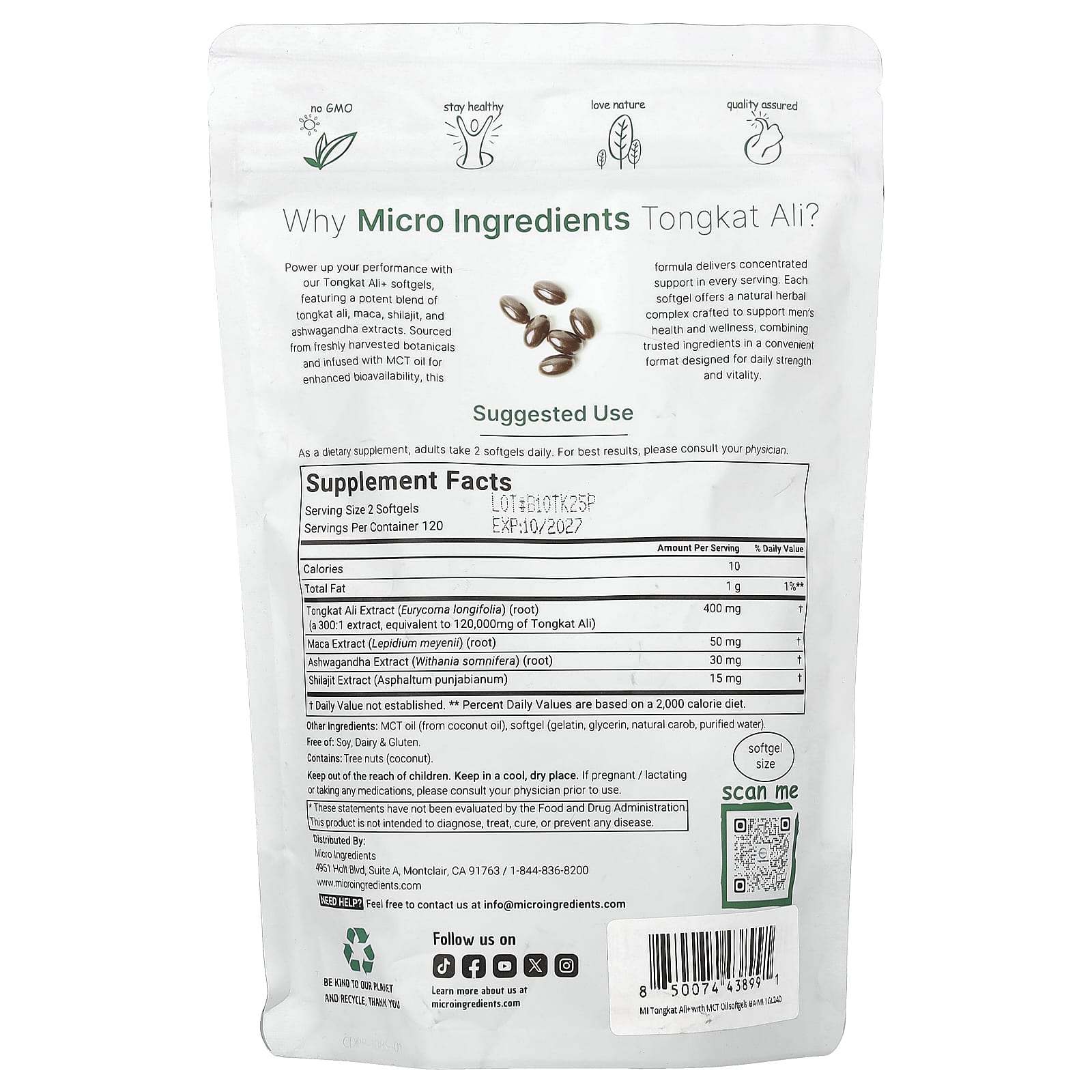 Повысьте производительность с помощью наших капсул Tongkat Ali+, содержащих эффективную смесь экстрактов эврикомы длиннолистой, маки, мумие и ашваганды. Это средство, полученное из свежесобранных растительных растений и обогащенное маслом MCT для повышения биодоступности, обеспечивает концентрированную поддержку в каждой порции. Каждая капсула содержит натуральный травяной комплекс, созданный для поддержки здоровья и хорошего самочувствия мужчин. Он сочетает в себе проверенные ингредиенты в удобной форме и обеспечивает ежедневную силу и жизненную силу.