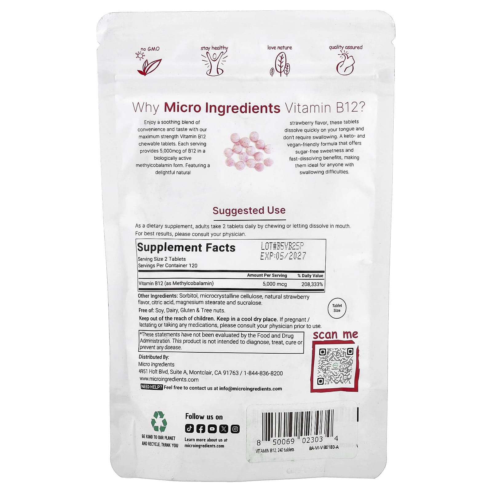 Наслаждайтесь успокаивающим сочетанием удобства и вкуса с нашими жевательными таблетками витамина B12 максимальной силы действия. Каждая порция содержит 5000 мкг витамина B12 в биологически активной форме метилкобаламина. Эти таблетки с приятным натуральным клубничным вкусом быстро растворяются на языке и их не нужно глотать. Это подходящая для кетодиеты и веганов формула, которая не содержит сахара и быстро растворяется, что делает ее идеальным продуктом для тех, у кого есть трудности с глотанием.