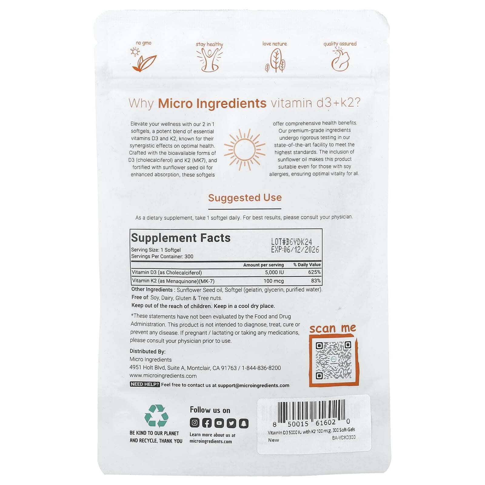 Наша формула, витамины d3 и k2 с подсолнечным маслом первого отжима, была создана с учетом потребления кальция, чтобы поддерживать здоровье костей и артерий.