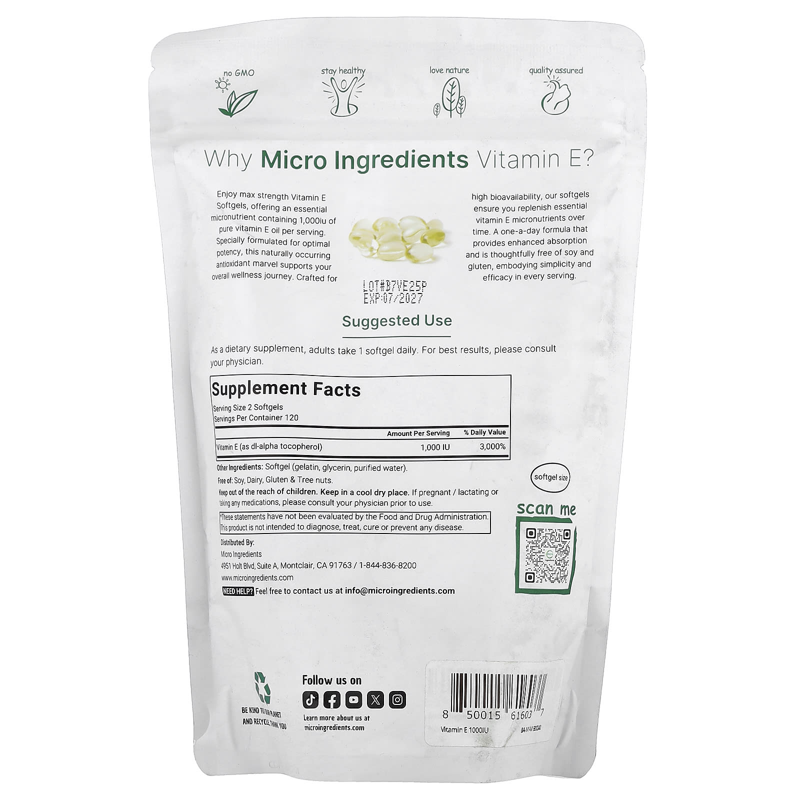 Наслаждайтесь капсулами витамина E максимальной силы действия, содержащими важный микронутриент, содержащий 1000 МЕ чистого масла витамина E в 1 порции. Это чудо природного происхождения, специально разработанное для обеспечения оптимальной эффективности, поддерживает общее хорошее самочувствие. Наши капсулы, обладающие высокой биодоступностью, обеспечат восполнение запаса незаменимых микроэлементов витамина Е в течение длительного времени. Формула для приема один раз в день, которая обеспечивает улучшенное усвоение и тщательно не содержит сои и глютена, воплощает простоту и эффективность в каждой порции.