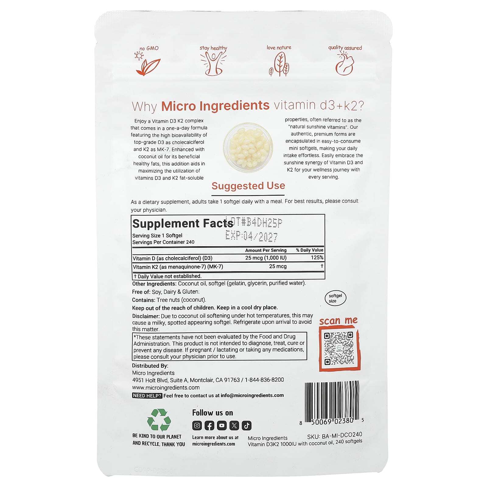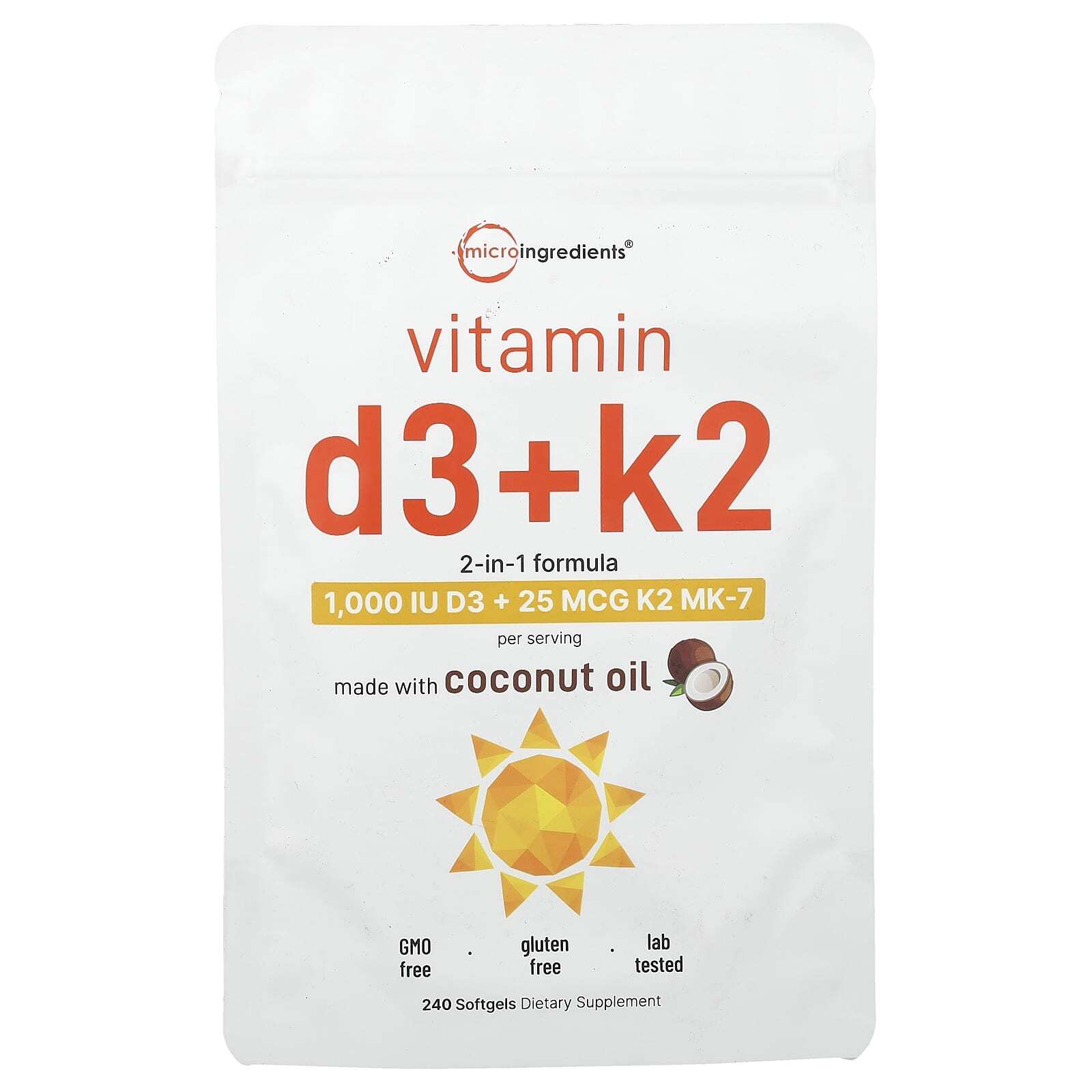 Наслаждайтесь комплексом витаминов D3 и K2, который входит в состав ежедневной формулы, обладающей высокой биодоступностью высококачественного витамина D3 в виде холекальциферола и K2 в виде MK-7. Эта добавка, обогащенная кокосовым маслом из-за его полезных жиров, помогает максимально использовать жирорастворимые витамины D3 и K2, которые часто называют «натуральными солнечными витаминами». Наши аутентичные премиальные формы заключены в удобные мини-капсулы, что позволяет без труда принимать их ежедневно. Обеспечьте синергию витаминов D3 и K2 для хорошего самочувствия с каждой порцией.