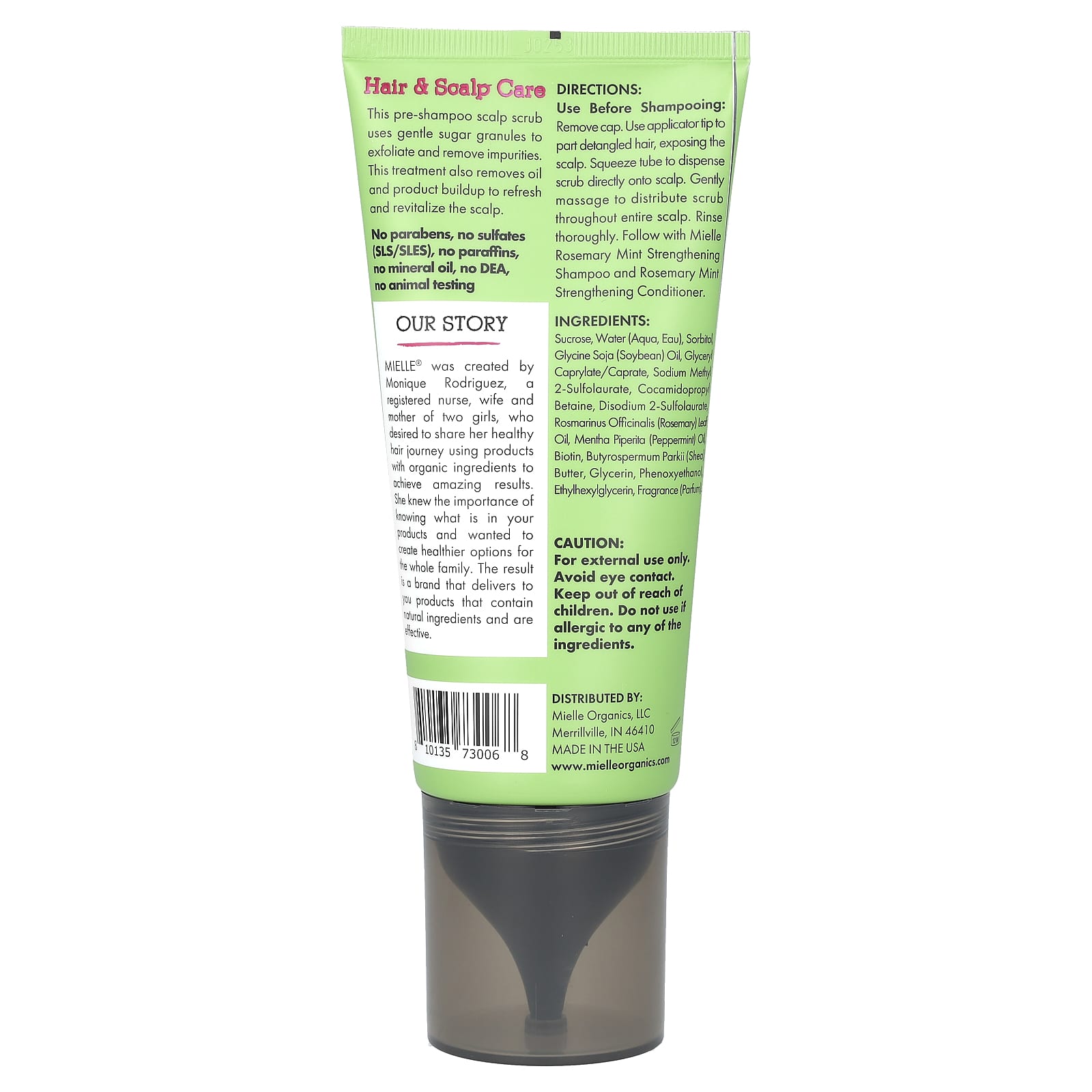 Используйте перед мытьем с шампунем. Снимите колпачок. Используйте кончик аппликатора, чтобы разделить распутанные волосы, обнажая кожу головы. Нажмите на тюбик, чтобы распределить скраб прямо на кожу головы. Аккуратно помассируйте, чтобы распределить скраб по всей коже головы. Тщательно смойте водой. Затем используйте укрепляющий шампунь с розмарином и мятой Mielle и укрепляющий кондиционер с розмарином и мятой.