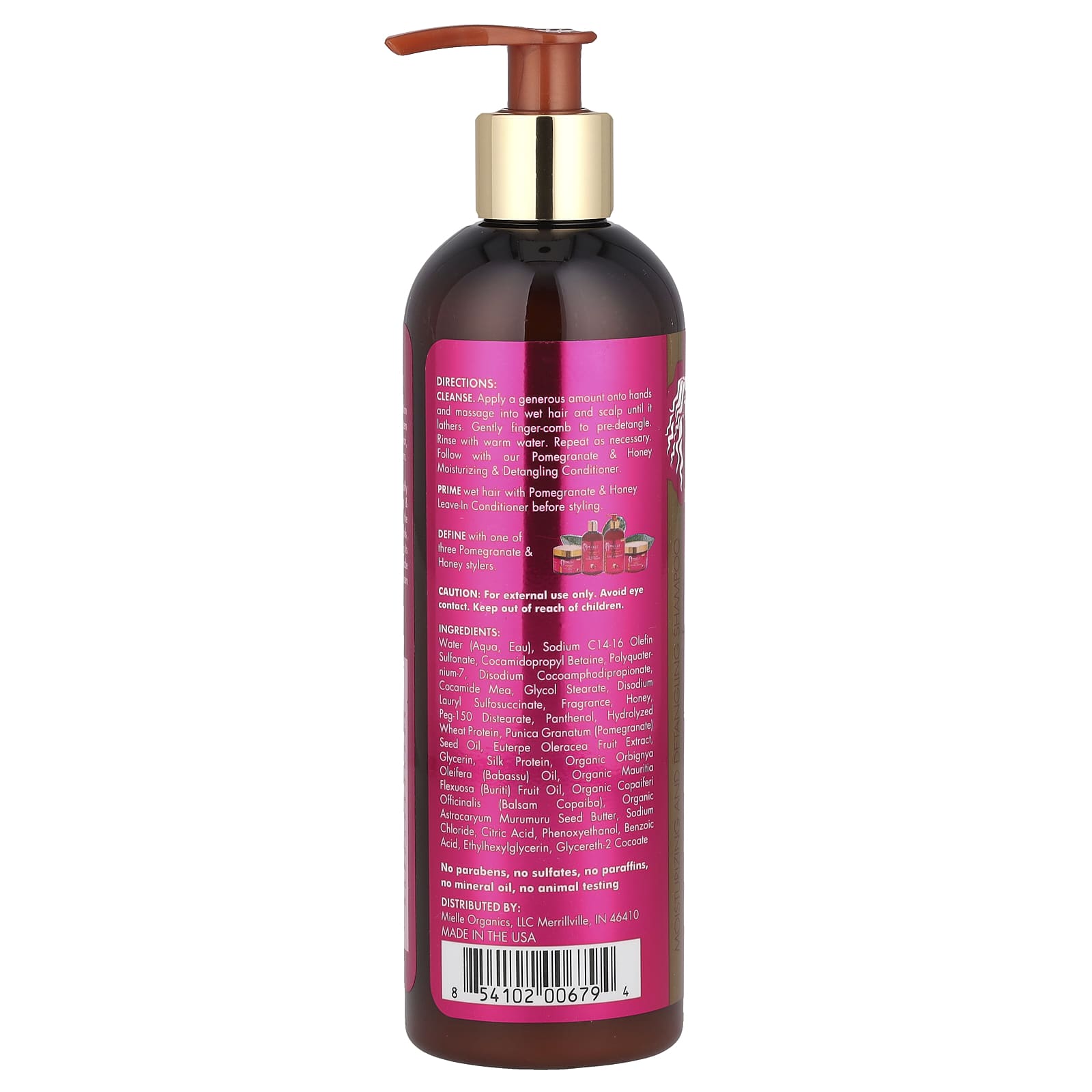 Очищение. Нанесите обильное количество средства на руки и массажными движениями нанесите на влажные волосы и кожу головы до образования пены. Аккуратно расчешите волосы, чтобы расчесать волосы. Смойте средство теплой водой. При необходимости повторите. Насладитесь нашим гранатом & Медовое увлажнение & Кондиционер для распутывания волос.