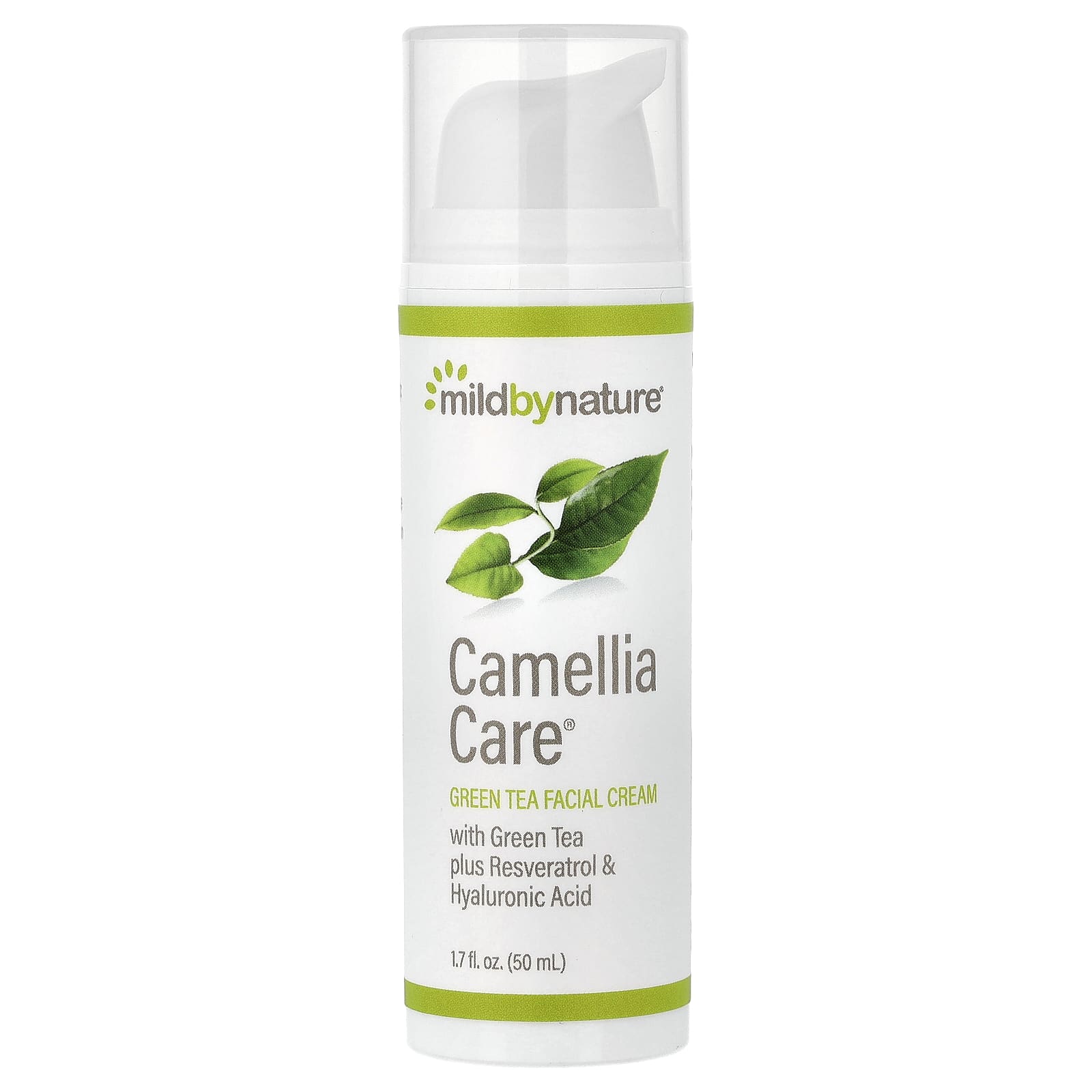 Крем для лица Camellia Care от Mild By Nature — это чистое и лёгкое увлажняющее средство с комбинацией зелёного чая (Camellia sinensis), ресвератрола и гиалуроновой кислоты.