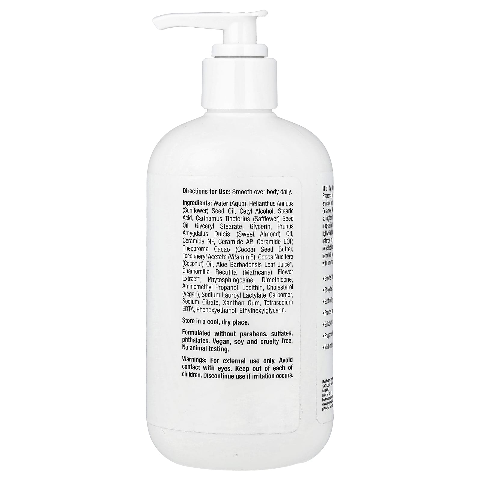 Лосьон для смягчения кожи без отдушек от Mild by Nature® — это глубоко увлажняющий лосьон для тела со смесью керамидов (керамид NP, керамид AP и керамид EOP), которые помогают укрепить естественный барьер кожи, обеспечить длительное увлажнение и предотвратить сухость. Этот лёгкий лосьон помогает поддерживать баланс влаги в коже, придавая ей мягкость, гладкость и свежесть. Нежирная формула идеально подходит для сухих, огрубевших участков кожи и предназначена для ежедневного применения. Лосьон придаёт ощущение комфорта и питает кожу.