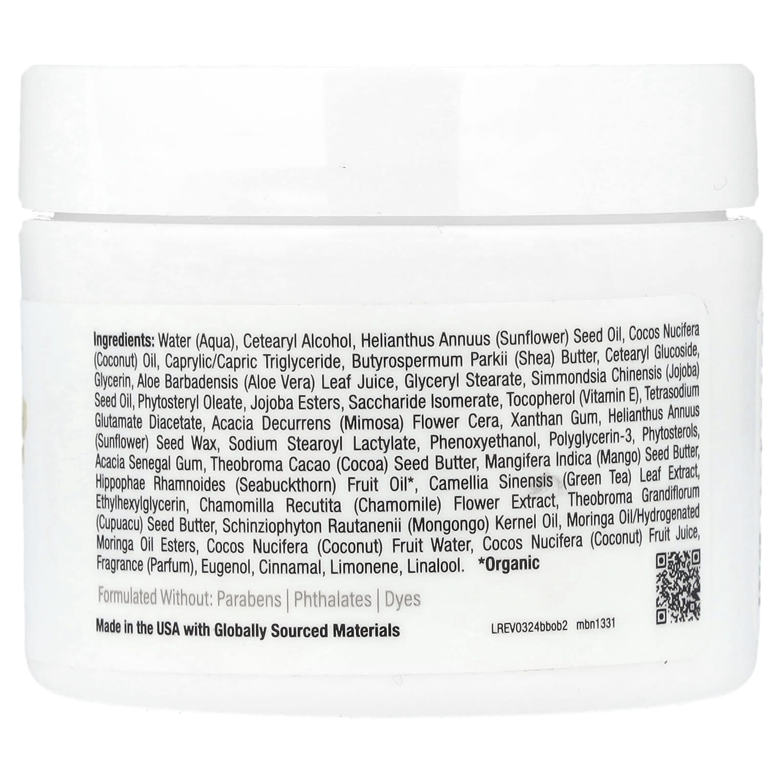 Вода, цетеариловый спирт, подсолнечное масло (Helianthus annuus)*, кокосовое масло (Cocos nucifera)*, каприловый/каприновый триглицерид, сок листьев алоэ вера (Aloe barbadensis)*, глицерин*, масло ши (Butyrospermum parkii)*, цетеариловый глюкозид, глицерил стеарат, масло семян жожоба (Simmondsia chinensis)*, фитостерил олеат, эфиры жожоба, инвертный сахар, токоферол, отдушка (парфюмерная композиция), диацетат глутамата тетранатрия, воск из цветков акации (Acacia decurrens), ксантановая камедь, воск из семян подсолнечника (Helianthus annuus), стеароиллактилат натрия, эфирное масло из плодов бергамота (Citrus aurantium bergamia), феноксиэтанол, полиглицерин-3, фитостеролы, смола акации катеху (Acacia catechu), масло зерен какао (Theobroma cacao), масло манго (Mangifera indica), экстракт плодов облепихи (Hippophae rhamnoides), экстракт зеленого чая (Camellia sinensis)*, этилгексилглицерин, экстракт цветков ромашки (Chamomilla recutita), масло семян купуасу (Theobroma grandiflorum), масло семян монгонго (Schinziophyton rautanenil), гидрогенизированные эфирные масла моринги, жидкий эндосперм кокоса (Cocos nucifera), глицерин, лимонная кислота, сок из плодов кокоса (Cocos nucifera), цитрат натрия.