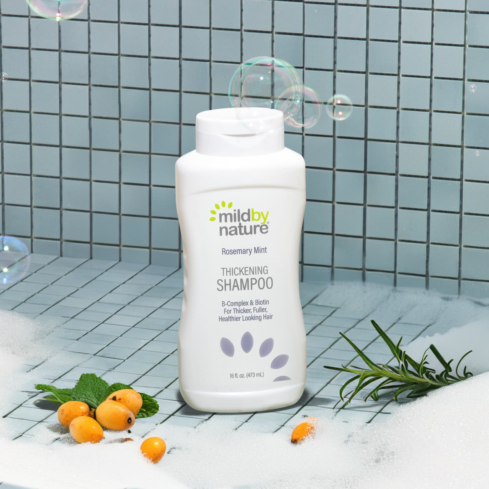 - Шампунь для густоты волос с розмарином и мятой от Mild By Nature