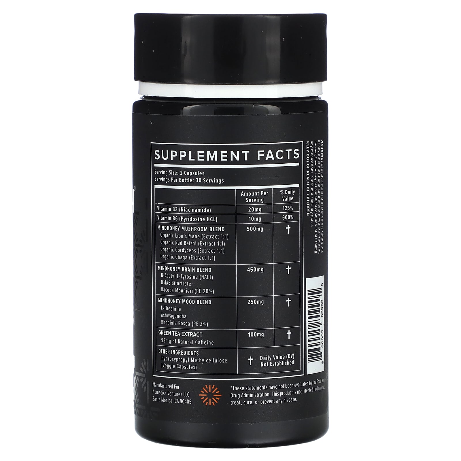 | Смесь грибов Mindhoney Органическая львиная грива (экстракт 1: 1) Органический красный рейши (экстракт 1: 1) Органический кордицепс (экстракт 1: 1) Органическая чага (экстракт 1: 1) | 500 мг | † |