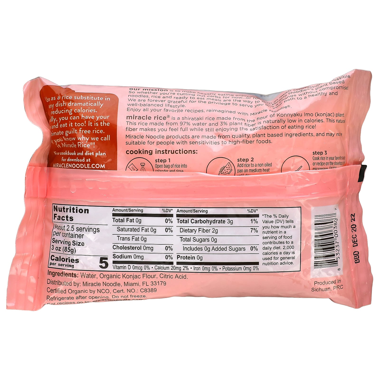 Miracle Rice® - это рис ширатаки, приготовленный из муки растения конняку ино. Этот рис, состоящий из 97% воды и 3% растительной клетчатки, от природы обладает низкой калорийностью. Натуральная клетчатка отлично насыщает и передает вкус риса!