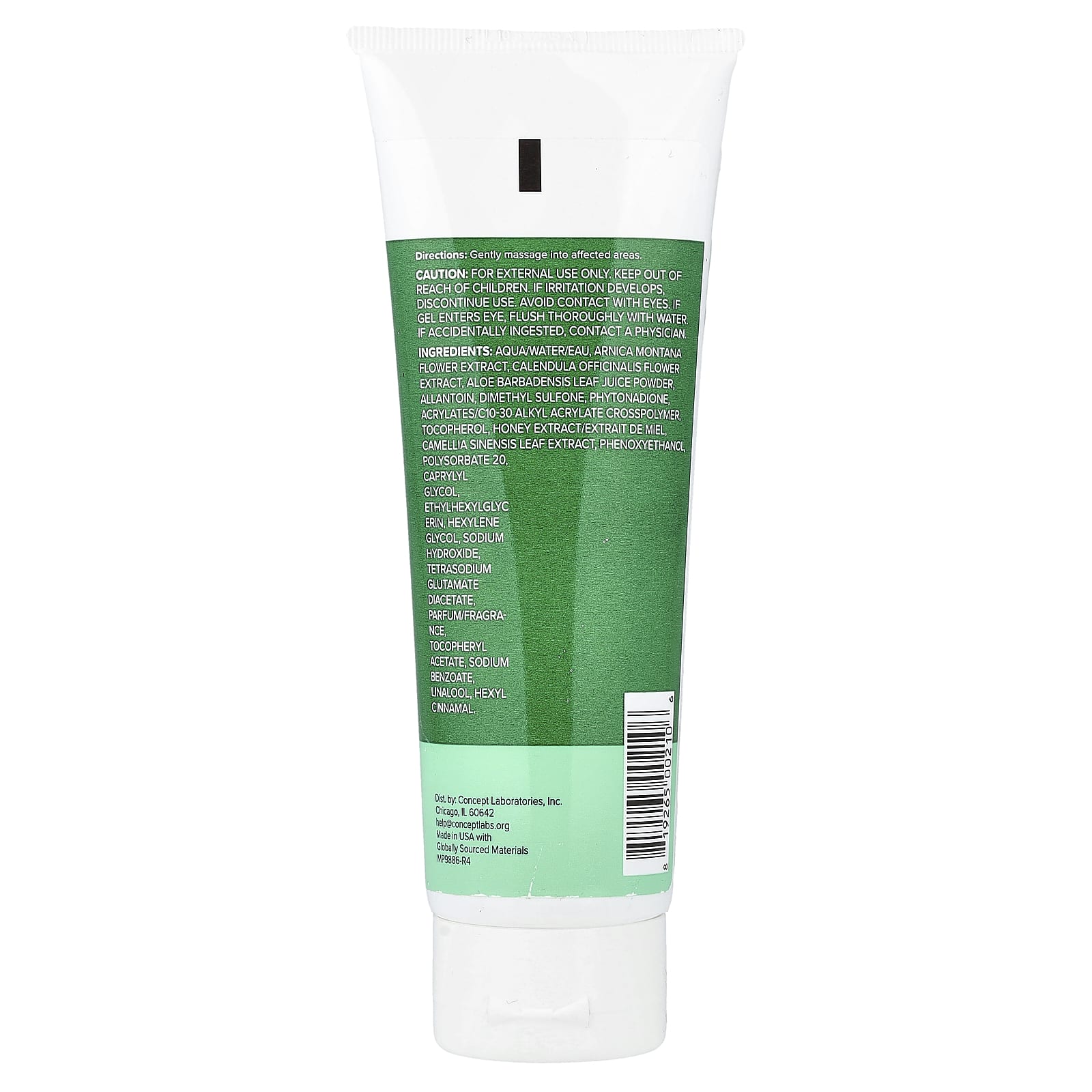 Вода, экстракт цветков арники (Arnica montana), экстракт цветков календулы (Calendula officinalis), порошок из сока листьев алоэ вера (Aloe barbadensis), аллантоин, диметилсульфон, фитонадион, акрилат/c10-30 алкил акрилат кроссполимер, токоферол, экстракт мёда, экстракт листьев зелёного чая (Camellia sinensis), феноксиэтанол, полисорбат 20, каприлилгликоль, этилгексилглицерин, гексиленгликоль, гидроксид натрия, диацетат глутамата тетранатрия, парфюмерная композиция/отдушка, токоферилацетат, бензоат натрия, линалоол, гексил циннамал.