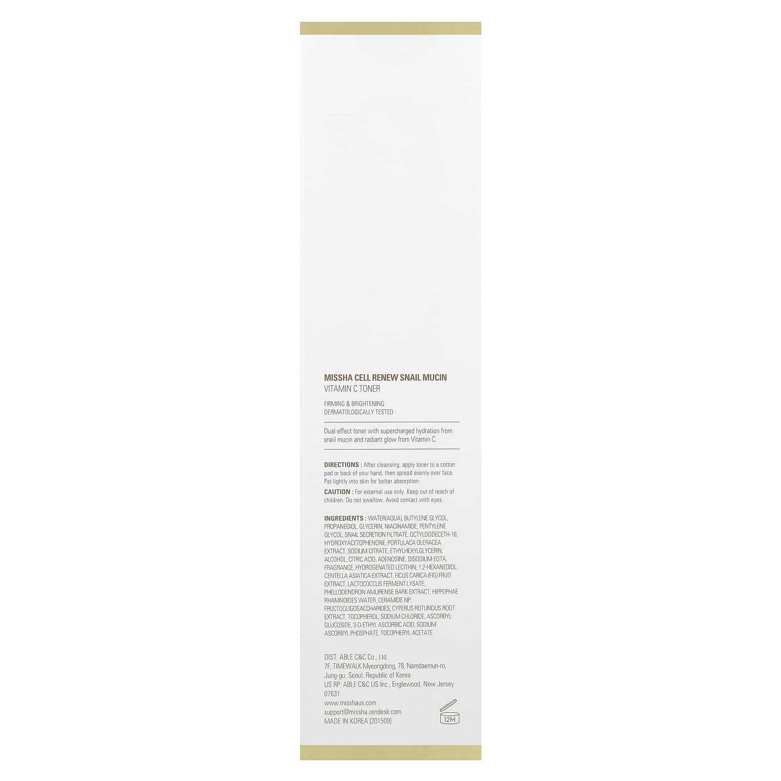 Вода, бутиленгликоль, пропандиол, глицерин, никотинамид, пентилен гликоль, фильтрат секрета улитки, октилдодецет-16, гидроксиацетофенон, экстракт портулака огородного (Portulaca oleracea), цитрат натрия, этилгексилглицерин, спирт, лимонная кислота, аденозин, двунатриевая ЭДТК, отдушка, гидрогенизированный лецитин, 1,2-гександиол, экстракт готу колы (Centella asiatica), экстракт плодов инжира (Ficus carica), лизат ферментов лактококка, экстракт коры амурского бархата (Phellodendron amurense), Бегемоты (Hippophae rhamnoides), керамид NP, фруктоолигосахариды, экстракт корня сиперуса (Cyperus rotundus), токоферол, хлорид натрия, аскорбил глюкозид, 3-0-этил аскорбиновая кислота, аскорбил фосфат натрия, токоферилацетат.