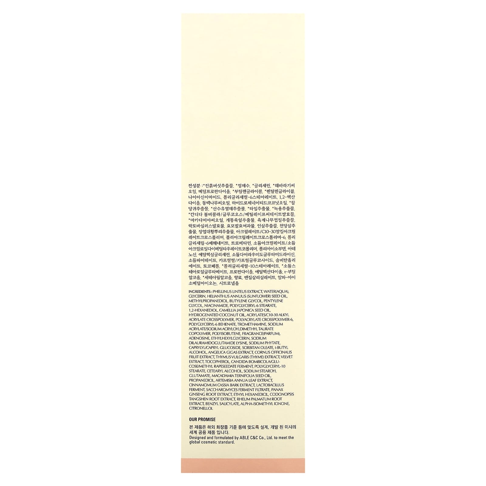 Наша гарантия: Продукт разработан и изготовлен компанией ABLE C&C Co., Ltd. в соответствии с мировыми косметическими стандартами.