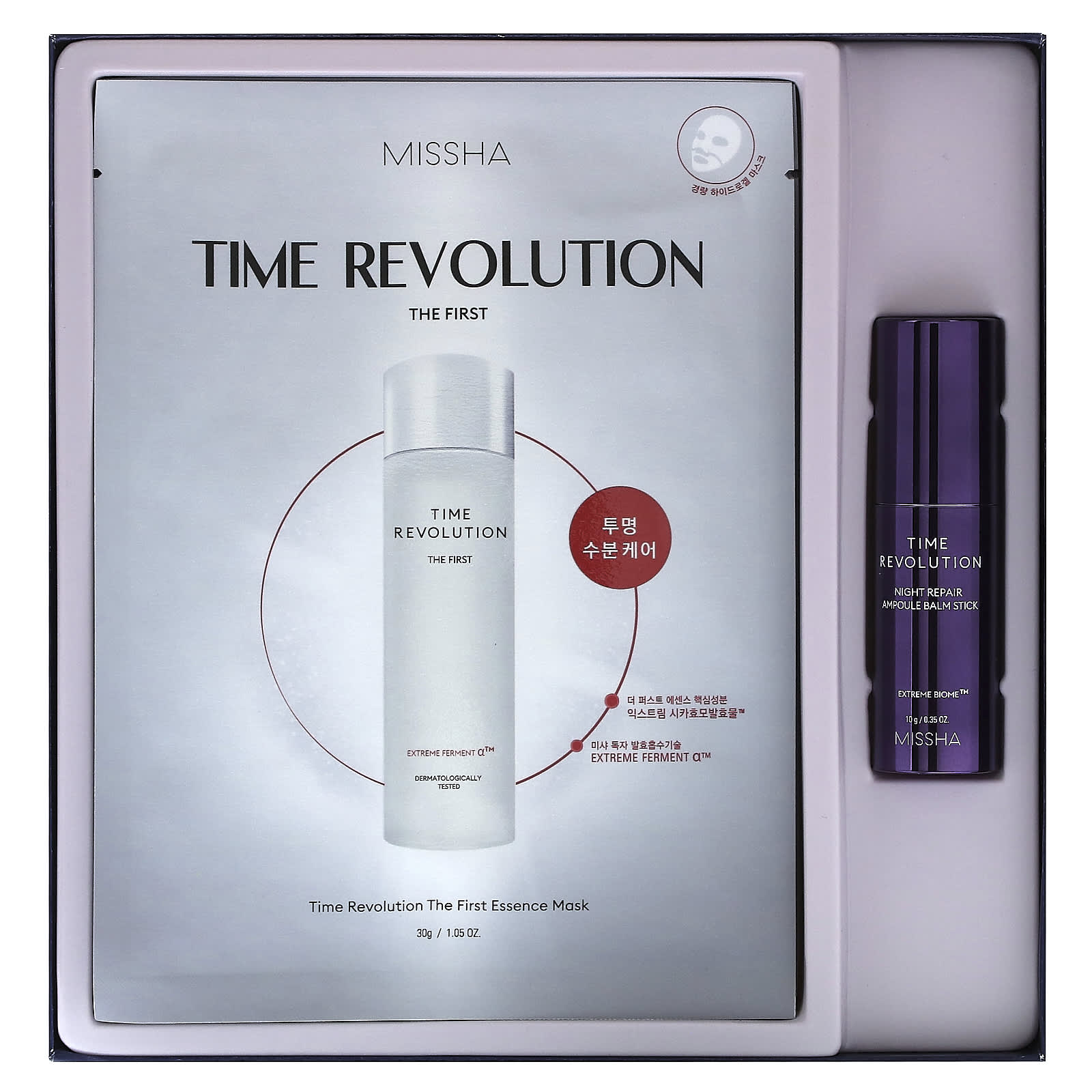 Бальзам-стик с двумя ампулами наполнен концентрированной формулой, содержащей ключевые ингредиенты ночной восстанавливающей ампулы Time Revolution. Он помогает устранить мелкие и глубокие морщины, делая кожу более упругой.
