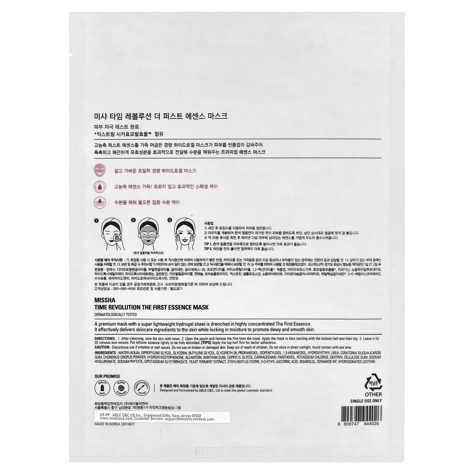 Маска премиального качества со сверхлегкой гидрогелевой тканью, пропитанной высококонцентрированной эссенцией The First Essence. Он эффективно доставляет ингредиенты для ухода за кожей, удерживая влагу, делая ее увлажненной и гладкой.