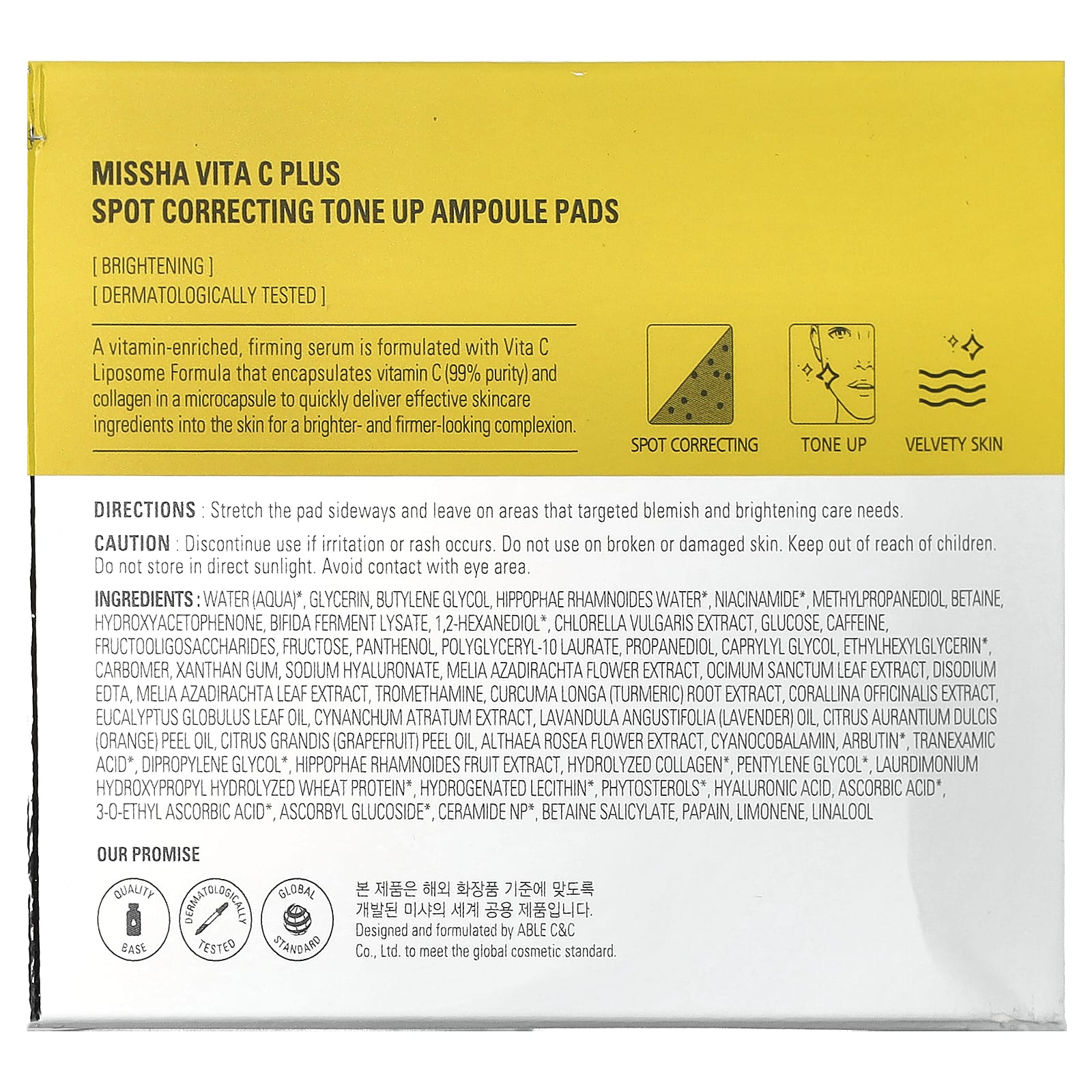 Вода, глицерин, бутиленгликоль, вода из облепихи крушиновидной (Hippophae rhamnoides), никотинамид, метилпропандиол, бетаин, гидроксиацетофенон, лизат ферментов бифидобактерий, 1,2-гександиол , экстракт хлореллы (Chlorella vulgaris), глюкоза, кофеин, фруктоолигосахариды, фруктоза, пантенол, полиглицерил-10 лаурат, пропандиол, каприлилгликоль, этилгексилглицерин карбомер, ксантановая камедь, гиалуронат натрия, экстракт цветков дерева ним (Melia azadirachta), экстракт листьев туласи (Ocimum sanctum), двунатриевая ЭДТК, экстракт листьев дерева ним (Melia azadirachta), трометамин, экстракт корня куркумы (Curcuma longa), экстракт кораллины целебной (Corallina officinalis), масло из листьев эвкалипта шаровидного (Eucalyptus globulus), экстракт цинанхума (Cynanchum atratum), лавандовое масло (Lavandula angustifolia), масло из цедры апельсина (Citrus aurantium dulcis), масло из цедры грейпфрута (Citrus grandis), экстракт цветков штокрозы розовой (Althaea rosea), цианокобаламин, арбутин, транексамовая кислота, дипропиленгликоль, экстракт плодов облепихи крушиновидной (Hippophae rhamnoides), гидролизованный коллаген, пентилен гликоль, лаурдимония гидроксипропил гидролизат протеина пшеницы, гидрогенизированный лецитин, фитостеролы, гиалуроновая кислота, аскорбиновая кислота, 3-0-этил-аскорбиновая кислота, аскорбил глюкозид, керамид NP, бетаин салицилат, папаин, лимонен, линалоол.