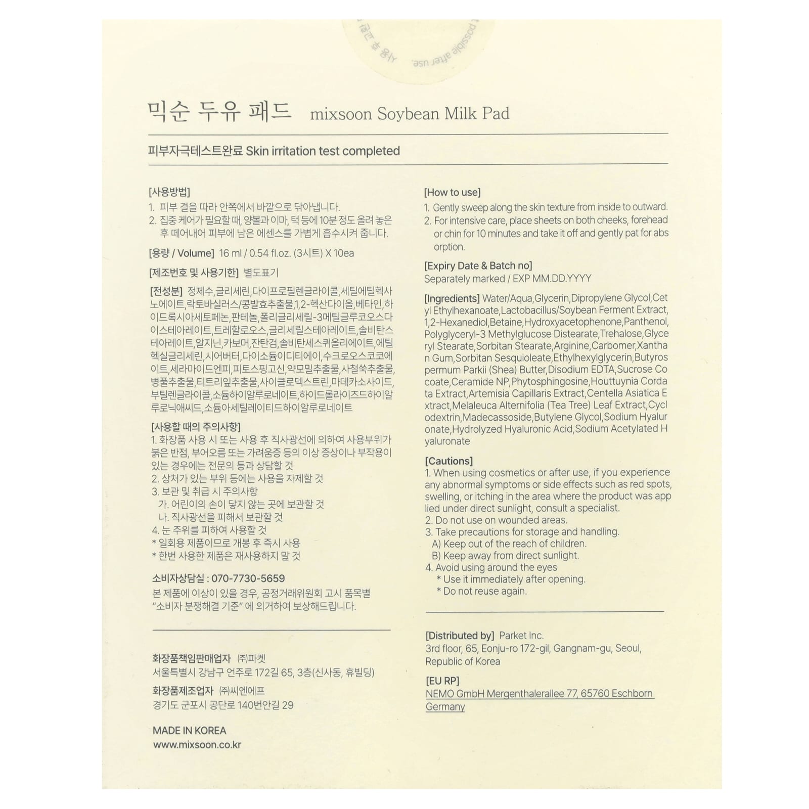 Вода, глицерин, дипропиленгликоль, цетилэтилгексаноат, лактобактерии (Lactobacillus) /ферментированный экстракт соевых бобов, 1,2-гександиол, бетаин, гидроксиацетофенон, пантенол, полиглицерил-3 метилглюкозы дистеарат, трегалоза, глицерил стеарат, сорбитан стеарат, аргинин, карбомер, ксантановая камедь, сорбитана сесквиолеат, этилгексилглицерин, масло ши (Butyrospermum parkii), двунатриевая ЭДТК, кокоат сахарозы, керамид NP, фитосфингозин, экстракт хауттюйнии (Houttuynia cordata), экстракт полыни волосовидной (Artemisia capillaris), экстракт готу колы (Centella asiatica), экстракт листьев чайного дерева (Melaleuca alternifolia), циклодекстрин, мадекассосид, бутиленгликоль, гиалуронат натрия, гидролизованная гиалуроновая кислота, ацетилированный гиалуронат натрия.