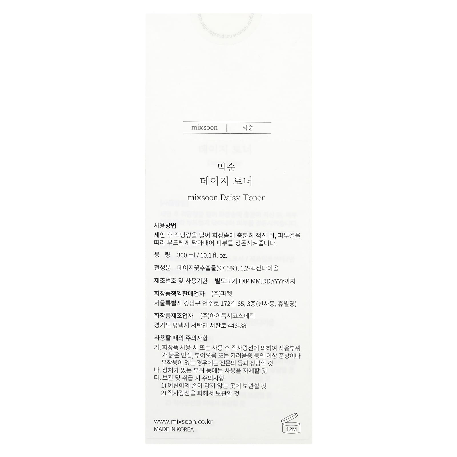 Тонер Mixsoon с маргариткой подходит для использования как утренний, так и вечерний уход за кожей. Наносите тоник после очищения и перед нанесением эссенций и кремов.